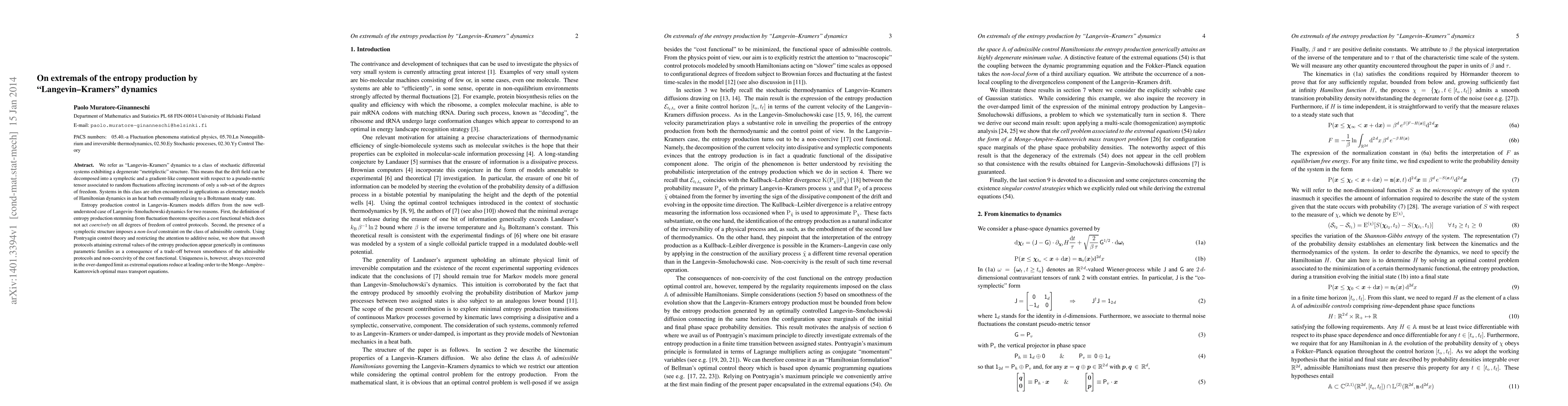 This paper explores entropy production control in Langevin-Kramers dynamics, revealing that extremal protocols arise due to a balance between protocol smoothness and non-coercivity of the cost functional. In the over-damped limit, uniqueness is restored, aligning with optimal mass transport equations.