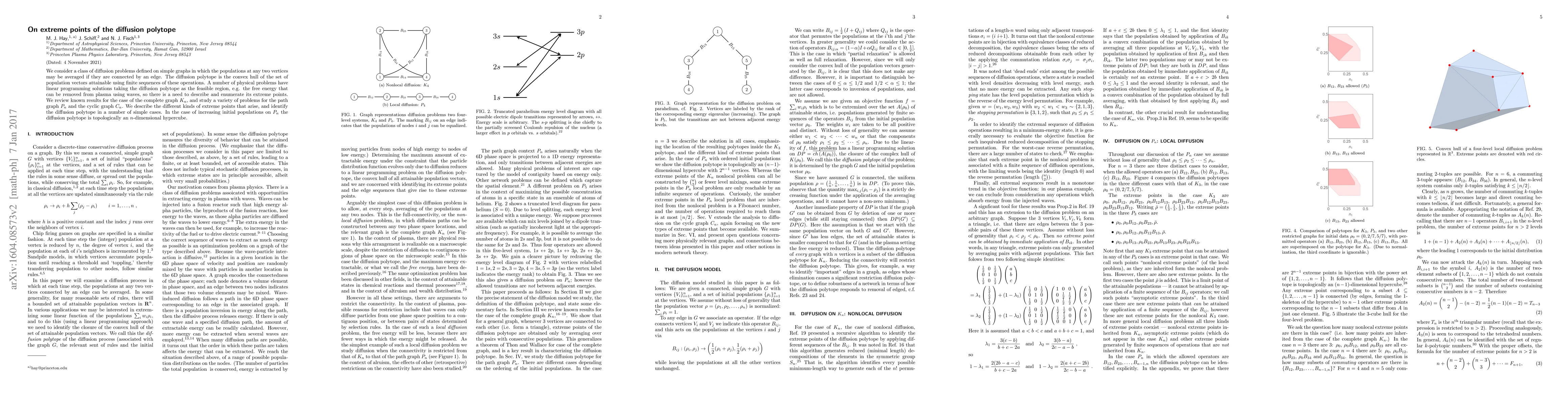 We consider a class of diffusion problems defined on simple graphs in which the populations at any two vertices may be averaged if they are connected by an edge. The diffusion polytope is the convex hull of the set of population vectors attainable using finite sequences of these operations. A number of physical problems have linear programming solutions taking the diffusion polytope as the feasible region, e.g. the free energy that can be removed from plasma using waves, so there is a need to describe and enumerate its extreme points. We review known results for the case of the complete graph $K_n$, and study a variety of problems for the path graph $P_n$ and the cyclic graph $C_n$. We describe the different kinds of extreme points that arise, and identify the diffusion polytope in a number of simple cases. In the case of increasing initial populations on $P_n$ the diffusion polytope is topologically an $n$-dimensional hypercube.