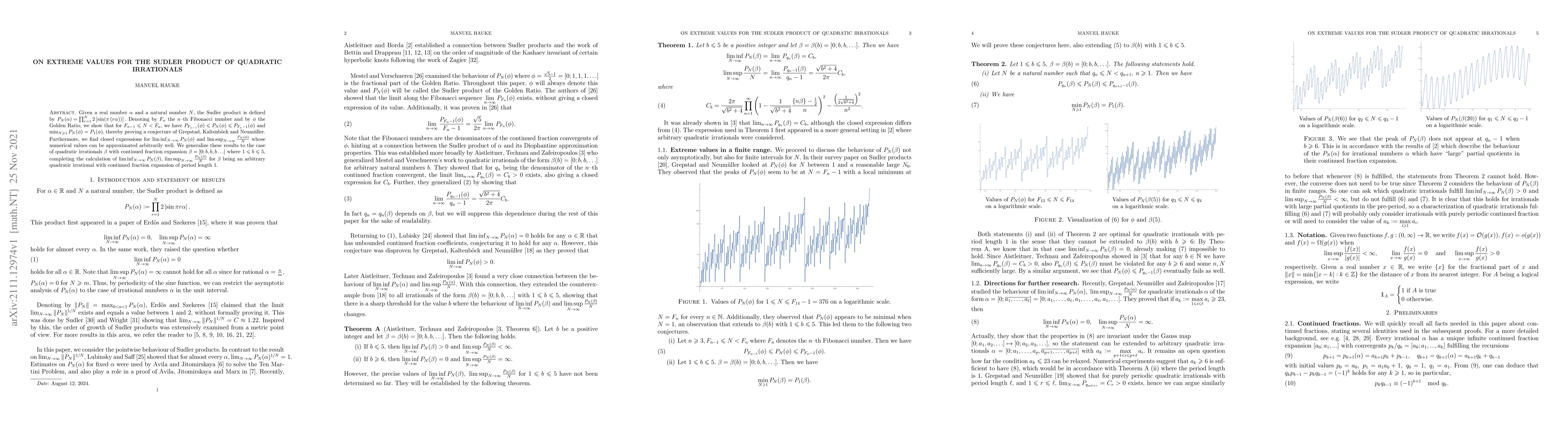 This paper proves a conjecture on extreme values of the Sudler product for quadratic irrationals, finding closed expressions for limits as N approaches infinity and generalizing results to certain quadratic irrationals.