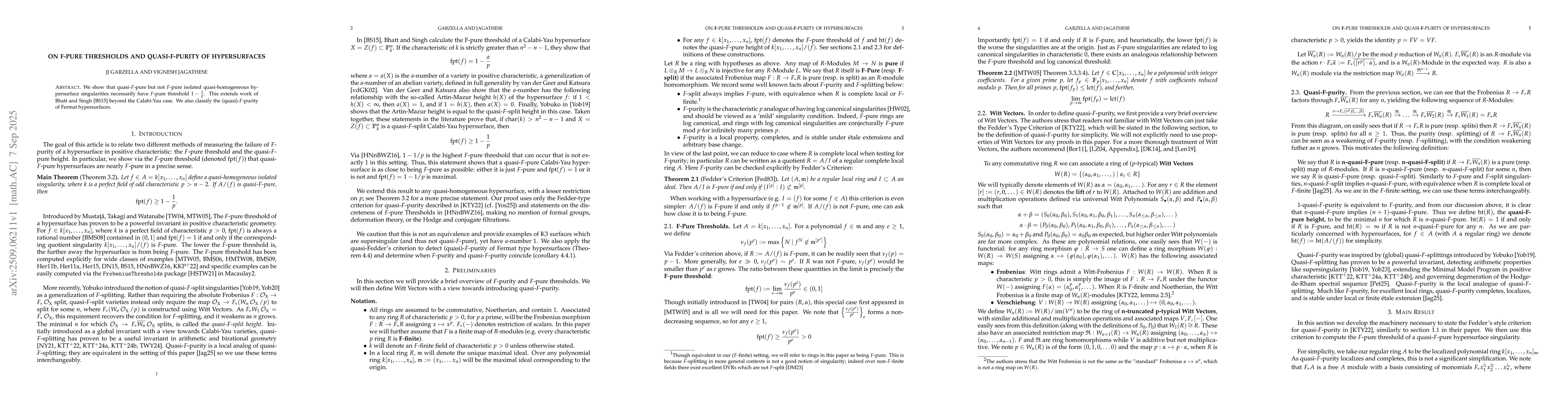 We show that quasi-$F$-pure but not $F$-pure isolated quasi-homogeneous hypersurface singularities necessarily have $F$-pure threshold $1 - \frac{1}{p}$. This extends work of Bhatt and Singh beyond the Calabi-Yau case. We also classify the (quasi)-$F$-purity of Fermat hypersurfaces.