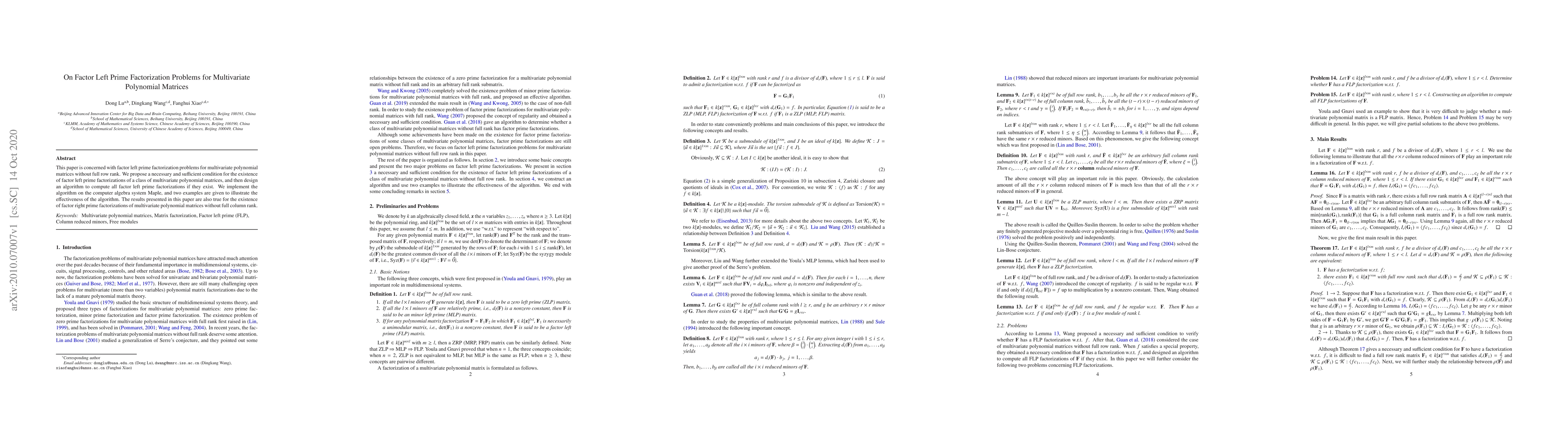 This paper proposes a necessary and sufficient condition for the existence of factor left prime factorizations for multivariate polynomial matrices lacking full row rank, and presents an algorithm to compute these factorizations if they exist, validated through examples in Maple. The findings also apply to factor right prime factorizations for matrices without full column rank.
