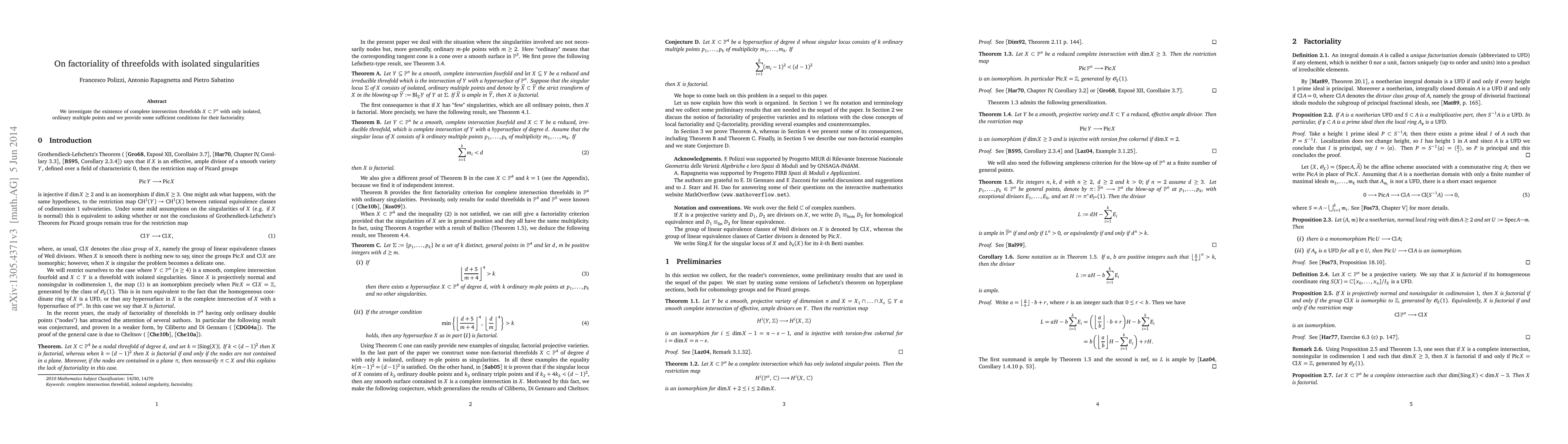 Summary: The paper explores complete intersection threefolds with isolated singularities and provides sufficient conditions for these threefolds to be factorial, focusing on the structure of their singularities.