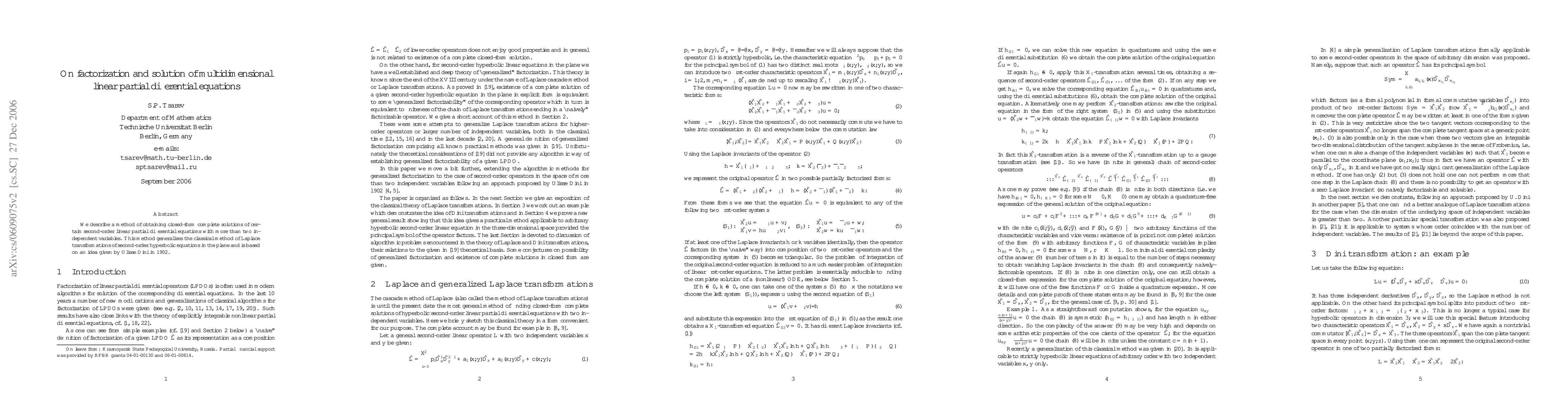 Summary: The paper presents a generalized method for solving second-order linear partial differential equations with multiple independent variables, extending the classical Laplace transformation technique and incorporating an idea from Ulisse Dini's 1902 work to derive closed-form solutions.