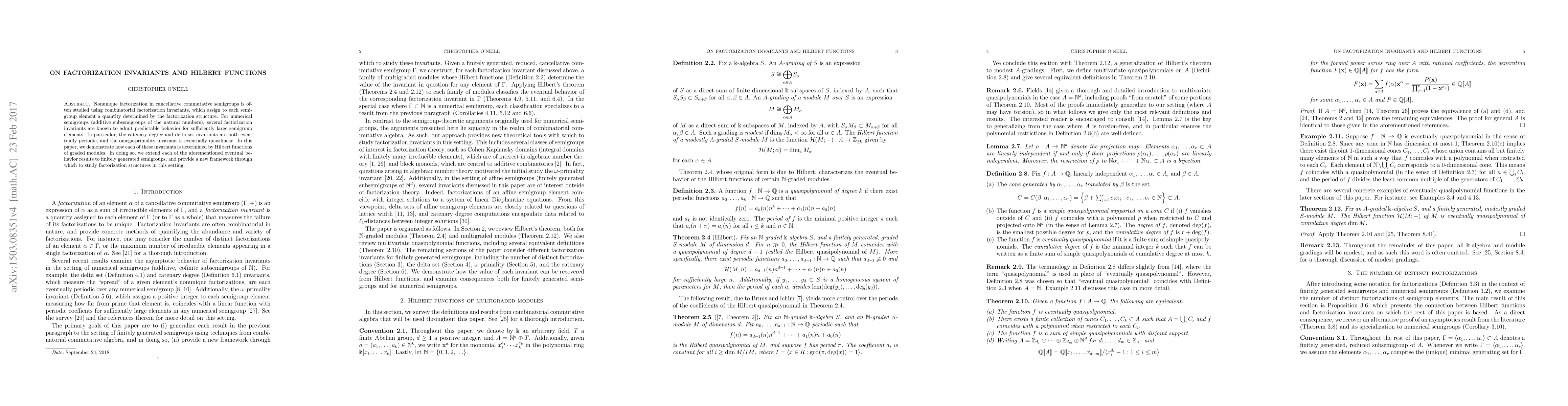 Researchers link factorization invariants to Hilbert functions of graded modules, extending periodic behavior results to finitely generated semigroups.
