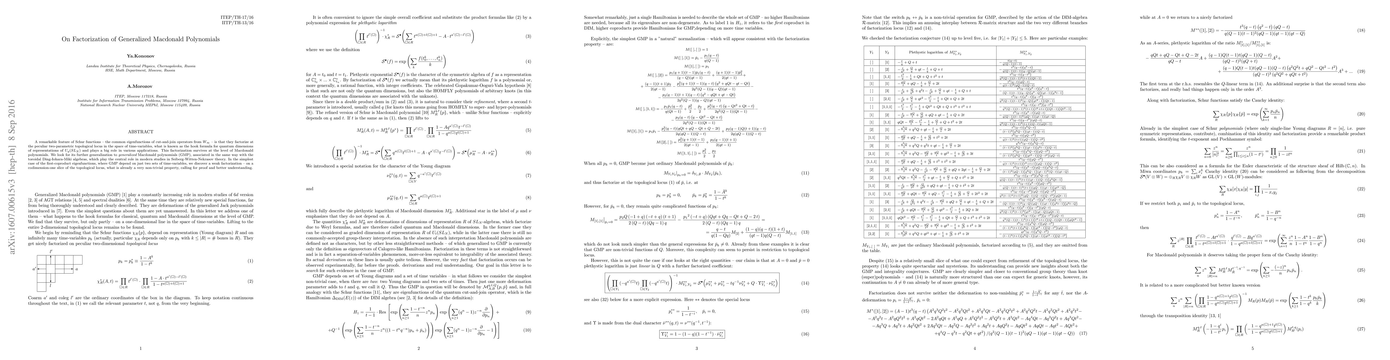 A remarkable feature of Schur functions -- the common eigenfunctions of cut-and-join operators from $W_\infty$ -- is that they factorize at the peculiar two-parametric topological locus in the space of time-variables, what is known as the hook formula for quantum dimensions of representations of $U_q(SL_N)$ and plays a big role in various applications. This factorization survives at the level of Macdonald polynomials. We look for its further generalization to {\it generalized} Macdonald polynomials (GMP), associated in the same way with the toroidal Ding-Iohara-Miki algebras, which play the central role in modern studies in Seiberg-Witten-Nekrasov theory. In the simplest case of the first-coproduct eigenfunctions, where GMP depend on just two sets of time-variables, we discover a weak factorization -- on a codimension-one slice of the topological locus, what is already a very non-trivial property, calling for proof and better understanding.
