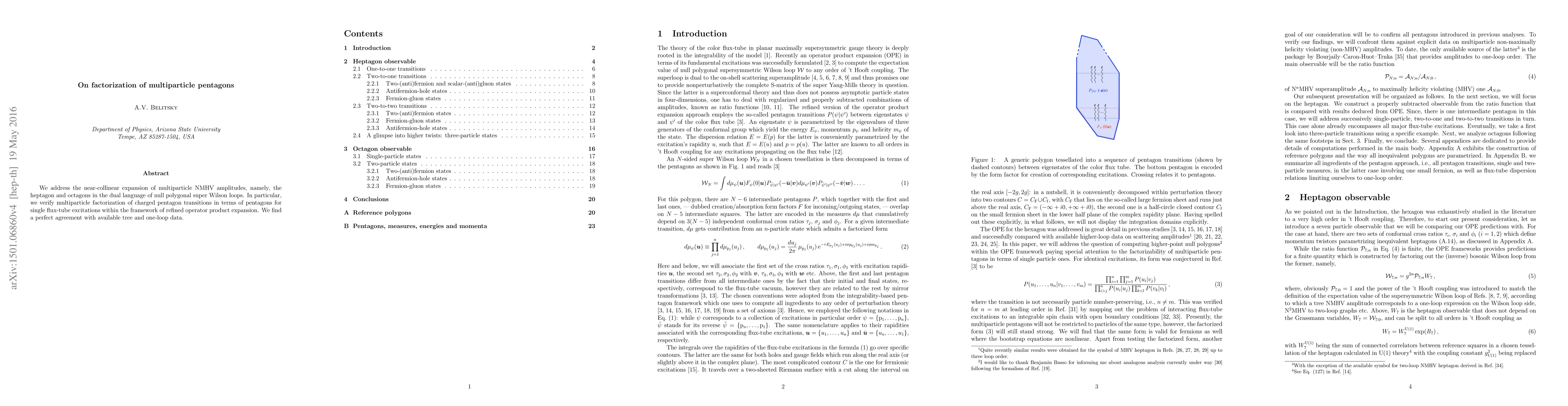 Researchers verified factorization of multiparticle pentagons in a framework that combines null polygonal super Wilson loops and refined operator product expansion, achieving perfect agreement with existing tree and one-loop data.
