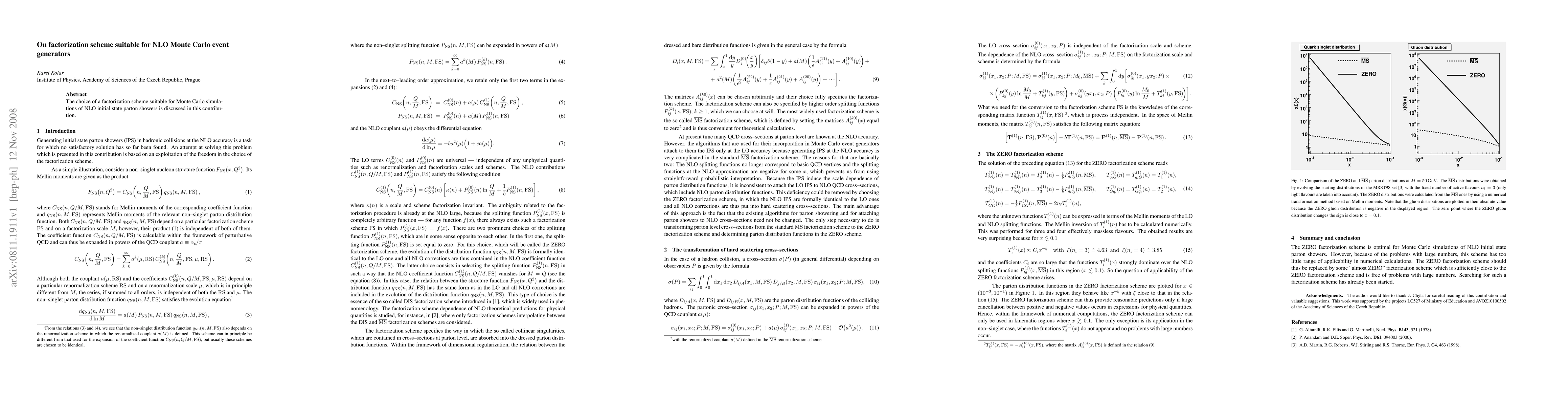 The paper presents the Zero factorization scheme, which simplifies NLO initial state parton shower simulations by setting NLO splitting functions to zero, along with a method for transforming hard scattering cross-sections to this scheme.