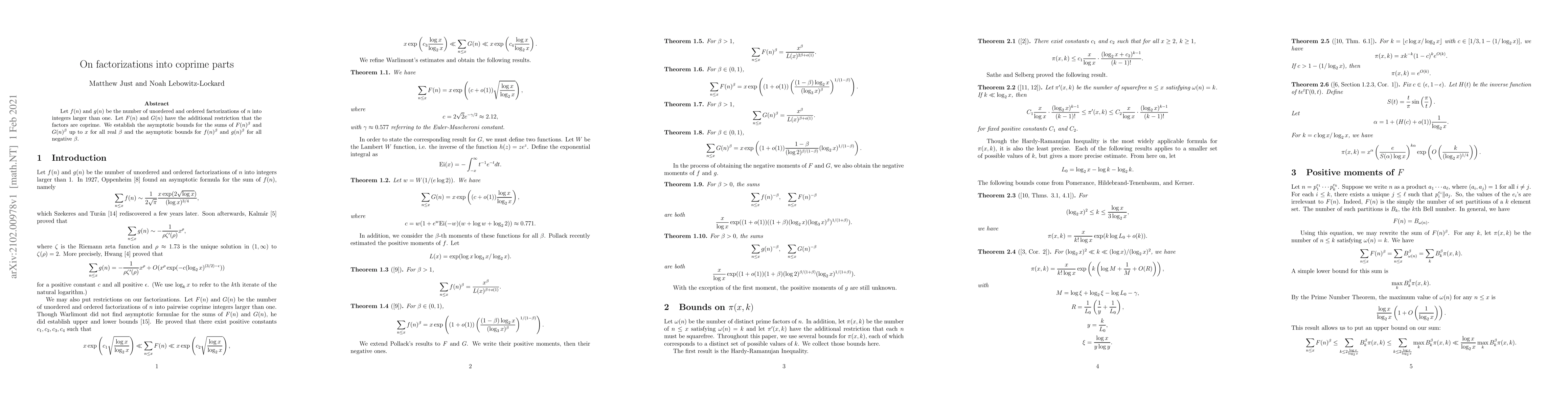 This paper establishes asymptotic bounds for the sums of factorization counts into coprime parts up to a given x, as well as bounds for general factorizations.