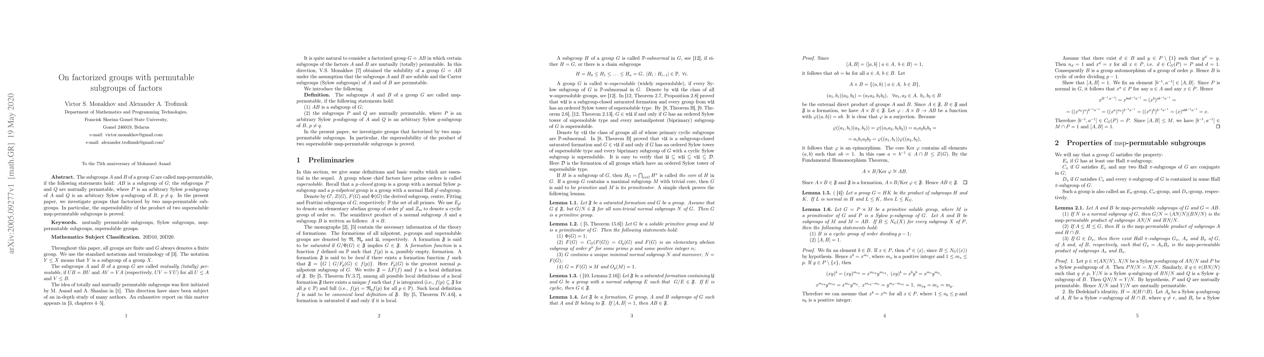This paper investigates groups that can be factored into two msp-permutable subgroups, proving that the product of two supersoluble msp-permutable subgroups is supersoluble. The concept of msp-permutability is defined in terms of the mutual permutability of Sylow subgroups of the subgroups involved.
