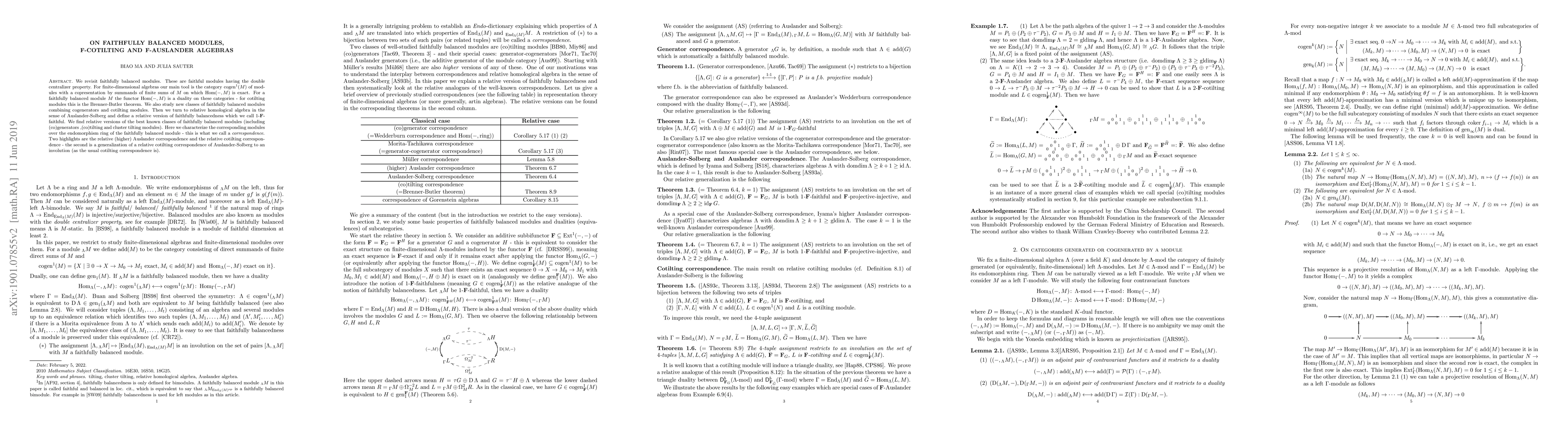 This paper explores faithfully balanced modules, which are faithful modules with the double centralizer property, focusing on their duality role in specific module categories. It introduces a relative homological algebra framework to define and characterize new classes of these modules, including cogenerators, cotilting, and cluster tilting modules, and presents the relative Auslander and cotilting correspondences.