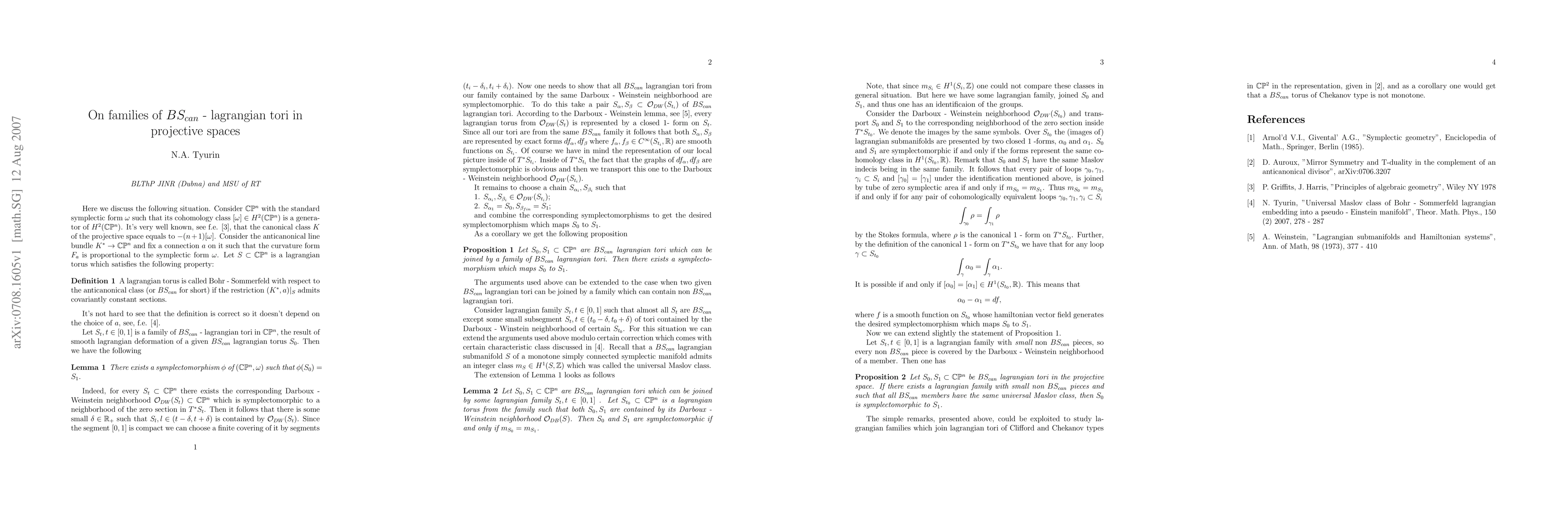 Summary: This note discusses two observations regarding Bohr-Sommerfeld quantization concerning anticanonical class Lagrangian tori in projective spaces, highlighting their significance in the context of monotone symplectic manifolds.