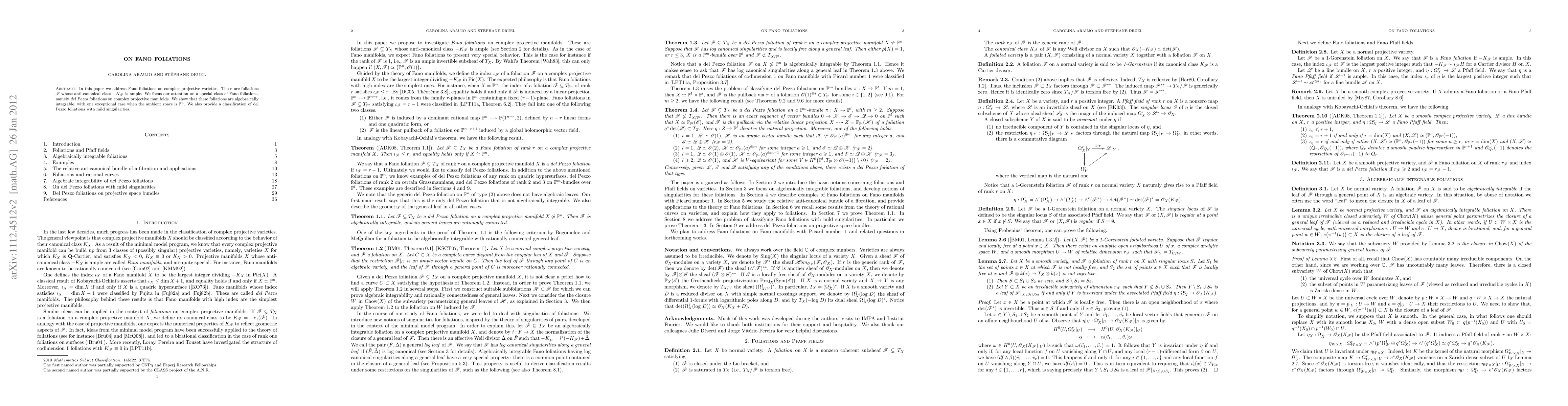 This paper studies Fano foliations, specifically del Pezzo foliations on complex projective manifolds, demonstrating their algebraic integrability except in one exceptional case in projective space. It provides a classification for del Pezzo foliations with mild singularities.