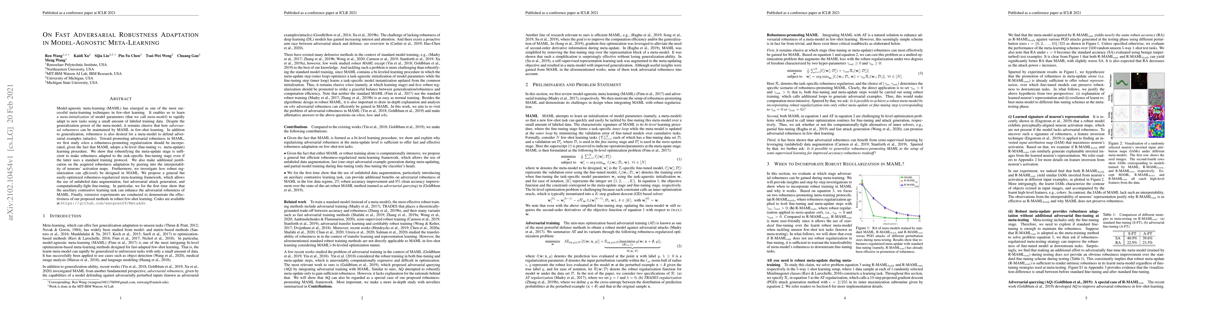 This paper explores enhancing adversarial robustness in model-agnostic meta-learning (MAML) for few-shot learning. It proposes that robustifying the meta-update stage is sufficient for achieving robustness in the task-specific fine-tuning stage, and introduces a novel framework for efficiently designing robust regularization in MAML, including the use of unlabeled data augmentation and contrastive learning to improve robustness.