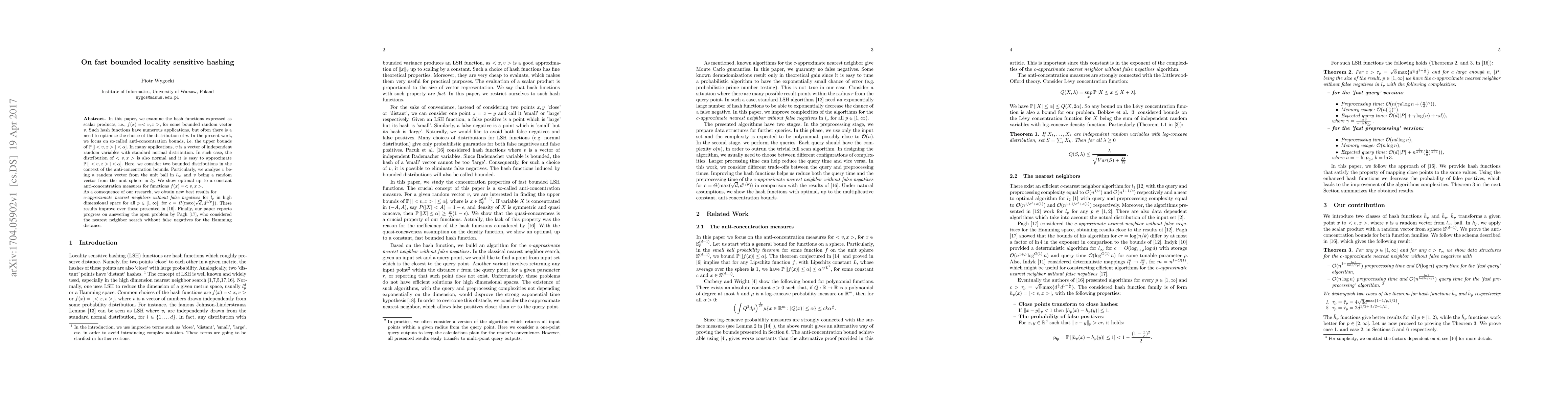 i.e., $f(x)=$, for some bounded random vector $v$. Such hash functions