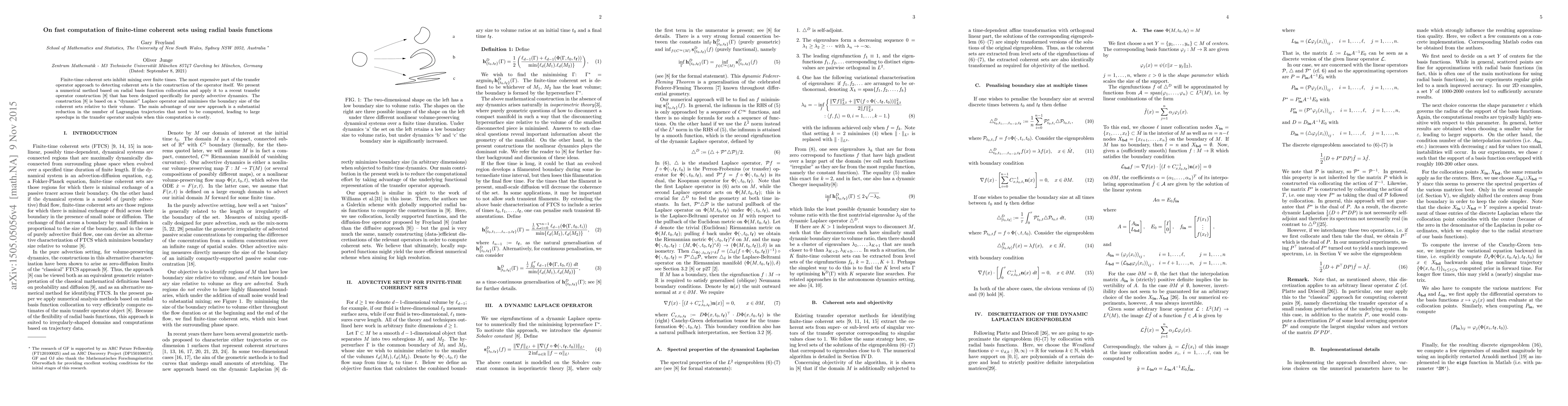 This research introduces a novel method using radial basis functions to efficiently compute finite-time coherent sets in advective dynamics, significantly reducing the number of Lagracian trajectories needed, thus speeding up transfer operator analysis in costly computations.