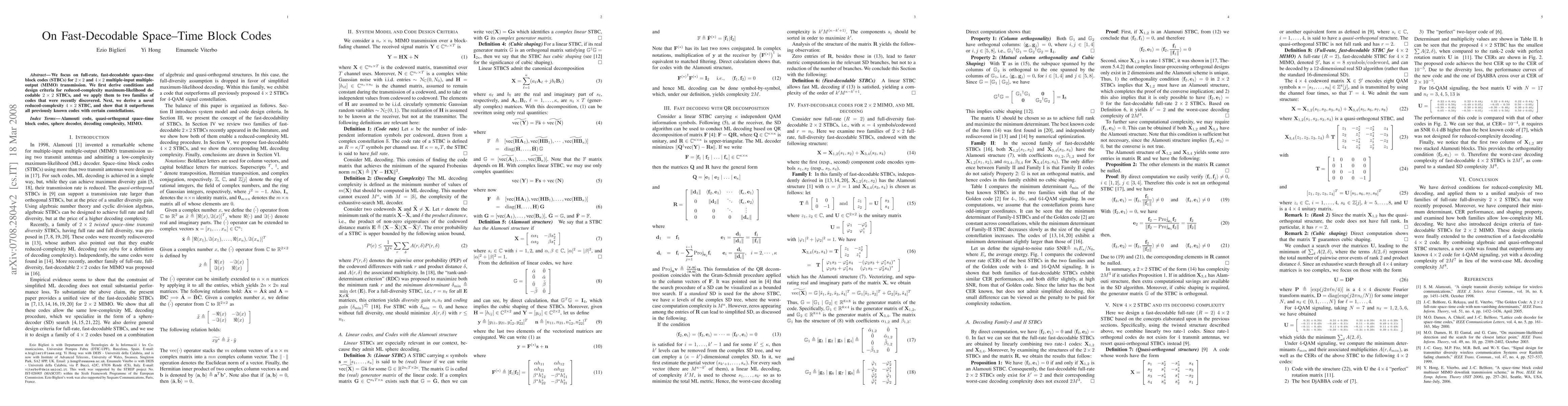 This paper develops fast-decodable space-time block codes (STBCs) for 2x2 and 4x2 MIMO systems, proposing reduced-complexity algorithms for maximum-likelihood decoding and introducing a novel 4x2 STBC that outperforms existing codes for specific signal constellations.
