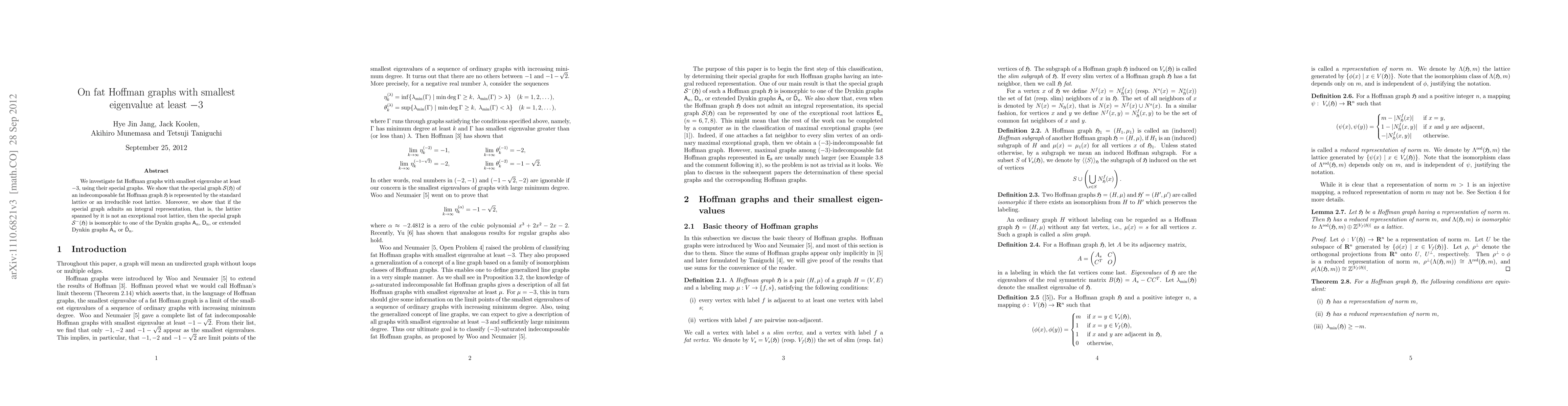 This research examines fat Hoffman graphs with a smallest eigenvalue of at least -3, demonstrating that their special graph representations are either standard lattices or irreducible root lattices. It further reveals that when these special graphs allow integral representations, they are isomorphic to Dynkin graphs A_n, D_n, or extended Dynkin graphs A_n or D_n.