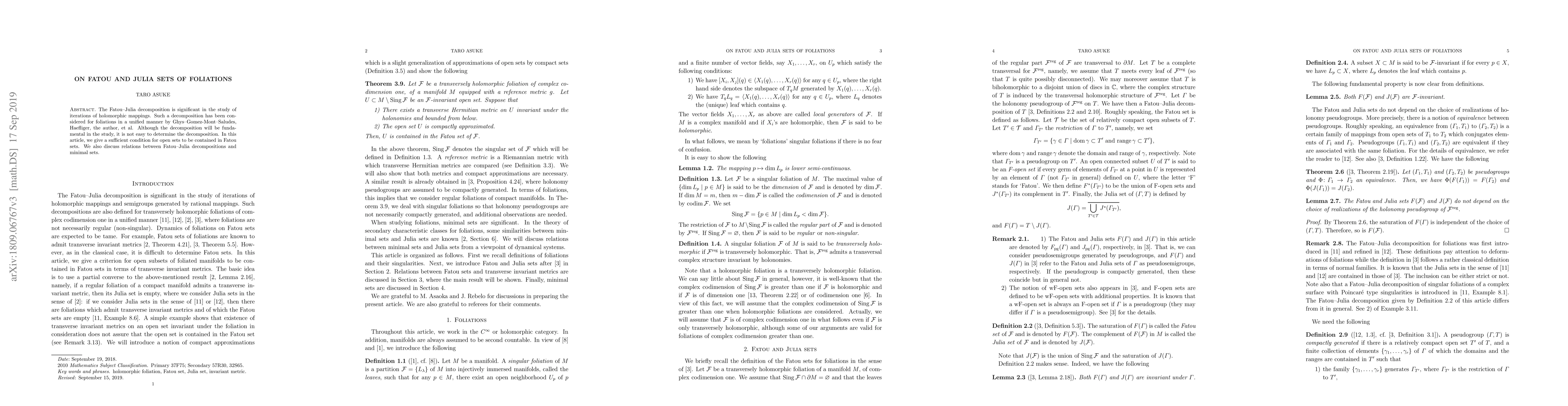 A comprehensive review of existing literature on Fatou-Juliadecompositions and their applications to foliations on complex manifolds.