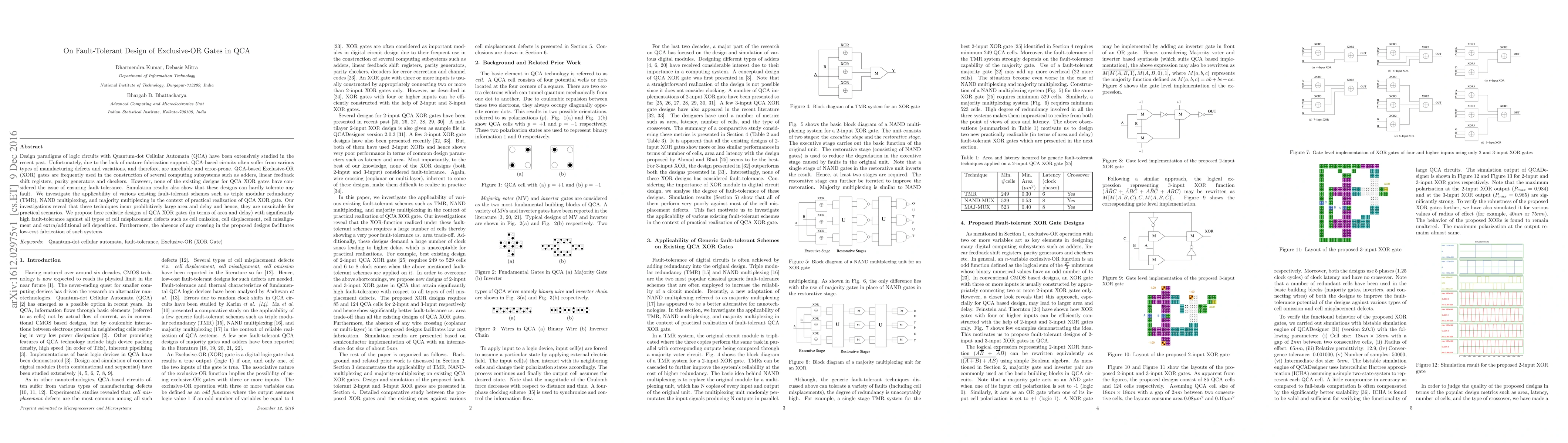 This paper explores fault-tolerant designs for Quantum-dot Cellular Automata (QCA) based Exclusive-OR (XOR) gates, addressing the unreliability due to manufacturing defects. Proposed designs achieve high fault-tolerance with minimized area and delay, avoiding impractical techniques like triple modular redundancy.