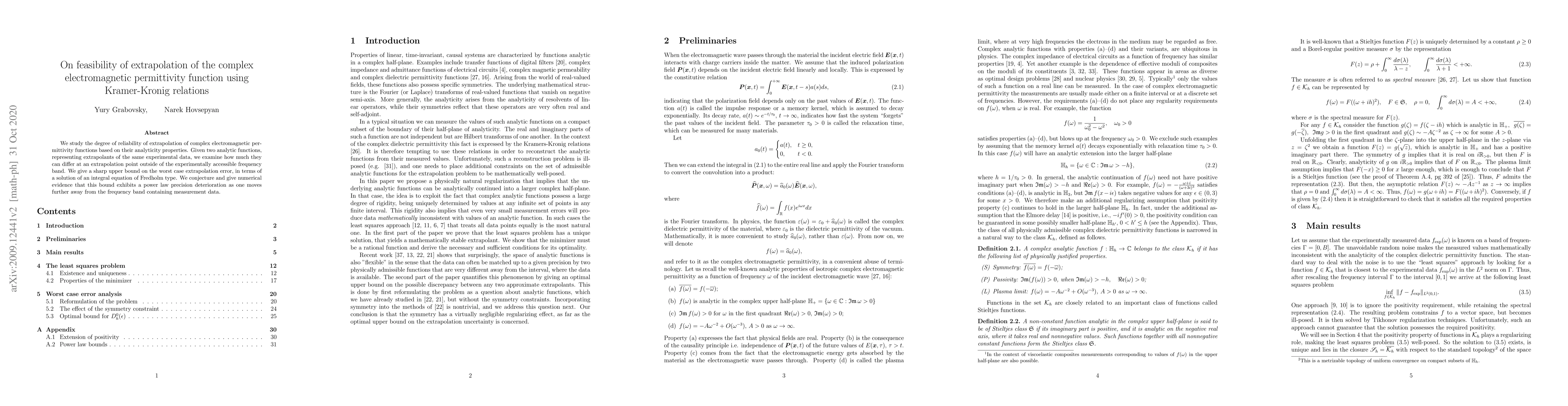 This paper investigates the reliability of extrapolating complex electromagnetic permittivity functions using Kramer-Kronig relations, providing a sharp upper bound on the worst-case extrapolation error and suggesting a power law precision deterioration with increasing distance from the measured frequency band. Numerical evidence supports this conjecture.