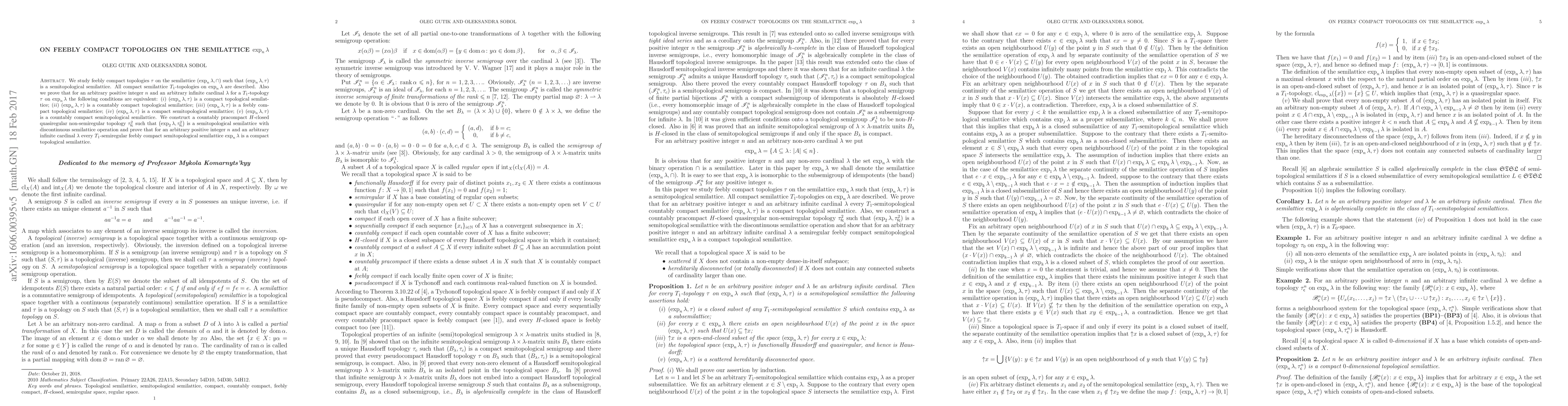 We study feebly compact topologies $\tau$ on the semilattice $\left(\exp_n\lambda,\cap\right)$ such that $\left(\exp_n\lambda,\tau\right)$ is a semitopological semilattice. All compact semilattice $T_1$-topologies on $\exp_n\lambda$ are described. Also we prove that for an arbitrary positive integer $n$ and an arbitrary infinite cardinal $\lambda$ for a $T_1$-topology $\tau$ on $\exp_n\lambda$ the following conditions are equivalent: $(i)$ $\left(\exp_n\lambda,\tau\right)$ is a compact topological semilattice; $(ii)$ $\left(\exp_n\lambda,\tau\right)$ is a countably compact topological semilattice; $(iii)$ $\left(\exp_n\lambda,\tau\right)$ is a feebly compact topological semilattice; $(iv)$ $\left(\exp_n\lambda,\tau\right)$ is a compact semitopological semilattice; $(v)$ $\left(\exp_n\lambda,\tau\right)$ is a countably compact semitopological semilattice. We construct a countably pracompact $H$-closed quasiregular non-semiregular topology $\tau_{\operatorname{\textsf{fc}}}^2$ such that $\left(\exp_2\lambda,\tau_{\operatorname{\textsf{fc}}}^2\right)$ is a semitopological semilattice with discontinuous semilattice operation and prove that for an arbitrary positive integer $n$ and an arbitrary infinite cardinal $\lambda$ every $T_1$-semiregular feebly compact semitopological semilattice $\exp_n\lambda$ is a compact topological semilattice.