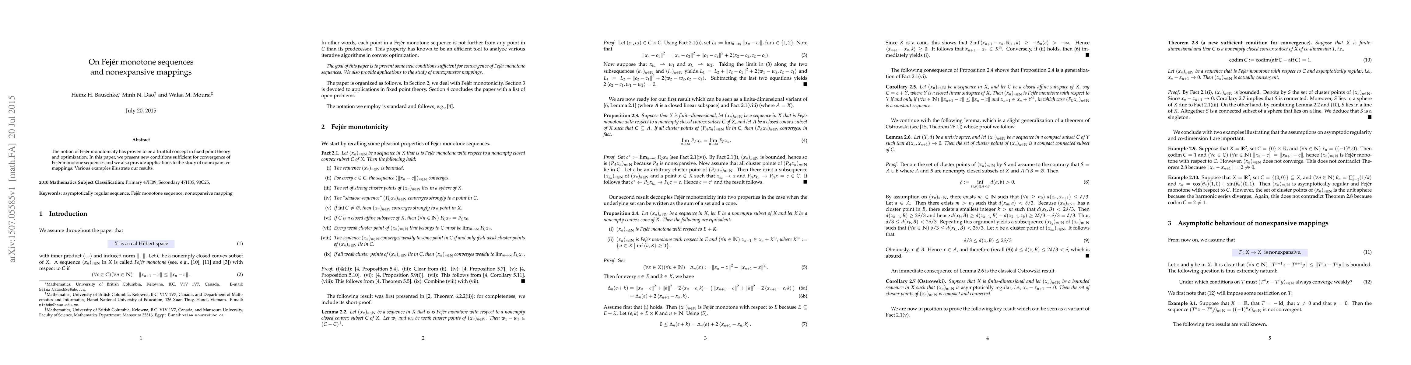 This paper introduces new conditions for the convergence of Fejér monotone sequences and applies these findings to the study of nonexpansive mappings, providing illustrative examples to demonstrate the results.
