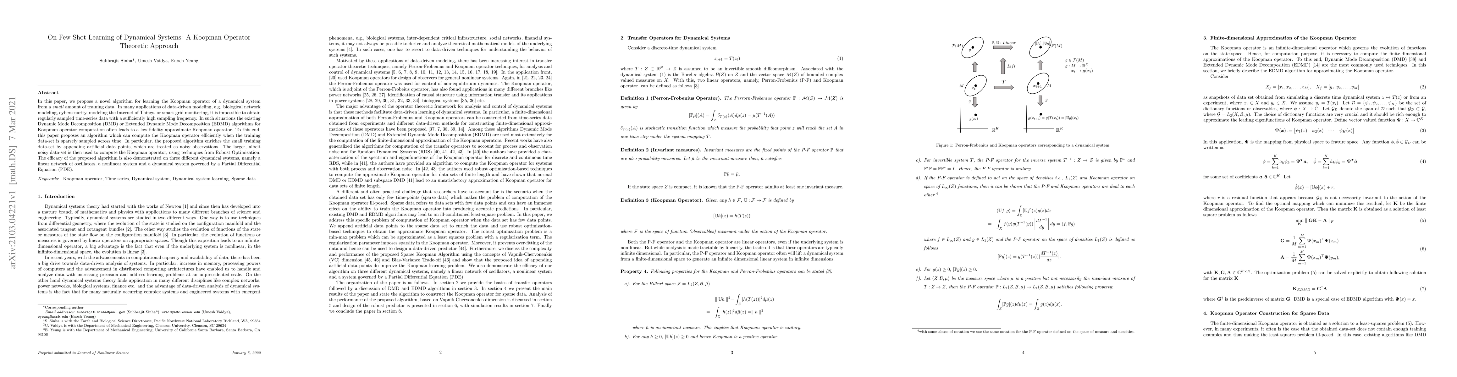 This paper proposes a novel algorithm for computing the Koopman operator of dynamical systems using sparse training data, addressing the limitations of existing methods like DMD and EDMD. The algorithm enriches the dataset with artificial noisy data points and employs robust optimization techniques to compute the operator, demonstrated on various dynamical systems.