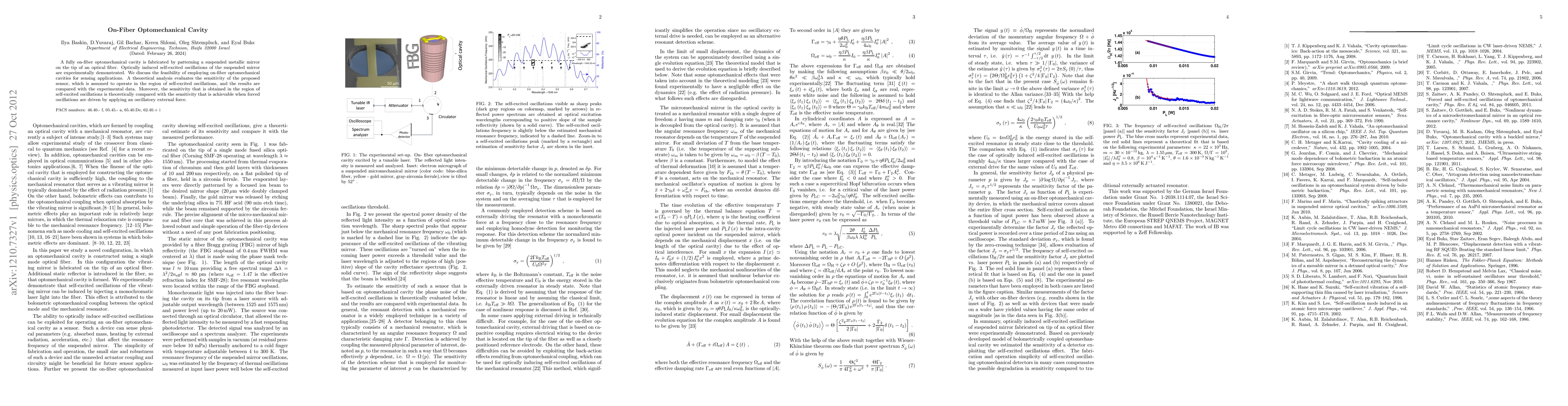 This paper presents a fully on-fiber optomechanical cavity with a suspended metallic mirror, demonstrating optically induced self-excited oscillations. The study evaluates the potential for sensing applications, comparing theoretical sensitivity in self-excited oscillations with that achievable via forced oscillations.