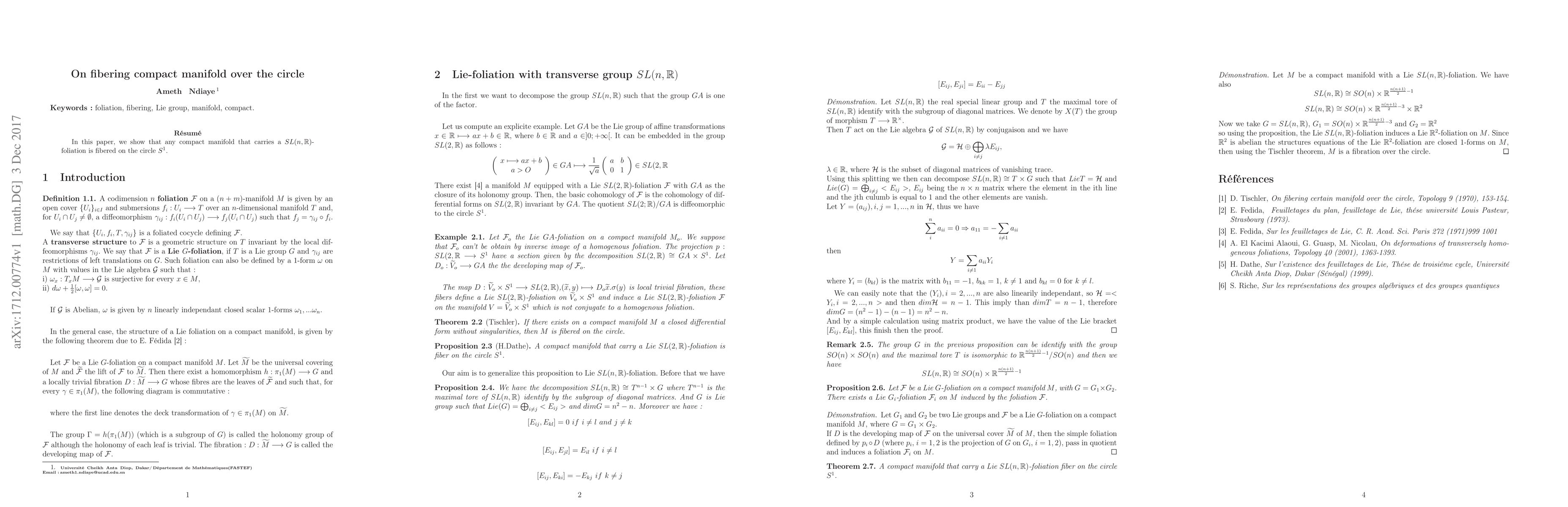In this paper, we show that any compact manifold that carries a SL(n;R)-foliation is fibered on the circle S^1.