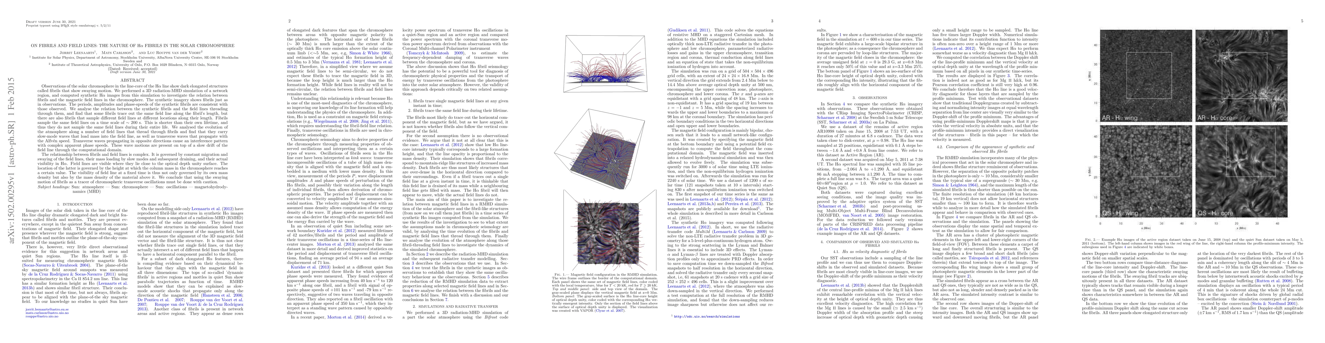 The paper presents a comprehensive analysis of the relationship between Hα fibrils and magnetic field lines using 3D radiation-MHD simulations, providing synthetic Hα images and detailed wave dynamics along fibril-threading field lines.