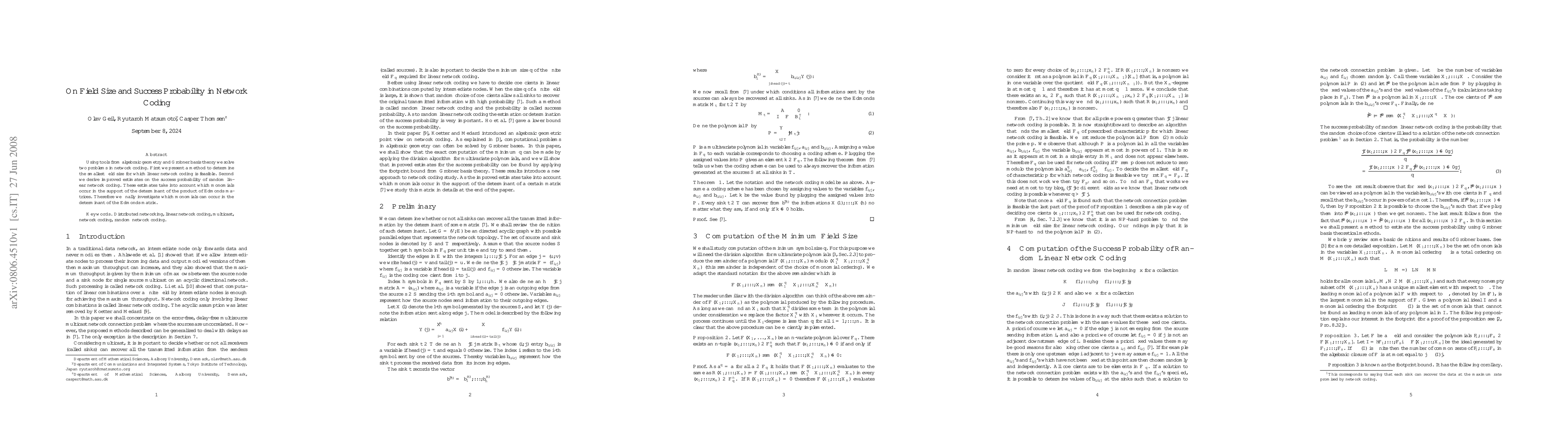 Using tools from algebraic geometry and Groebner basis theory we solve two problems in network coding. First we present a method to determine the smallest field size for which linear network coding is feasible. Second we derive improved estimates on the success probability of random linear network coding. These estimates take into account which monomials occur in the support of the determinant of the product of Edmonds matrices. Therefore we finally investigate which monomials can occur in the determinant of the Edmonds matrix.