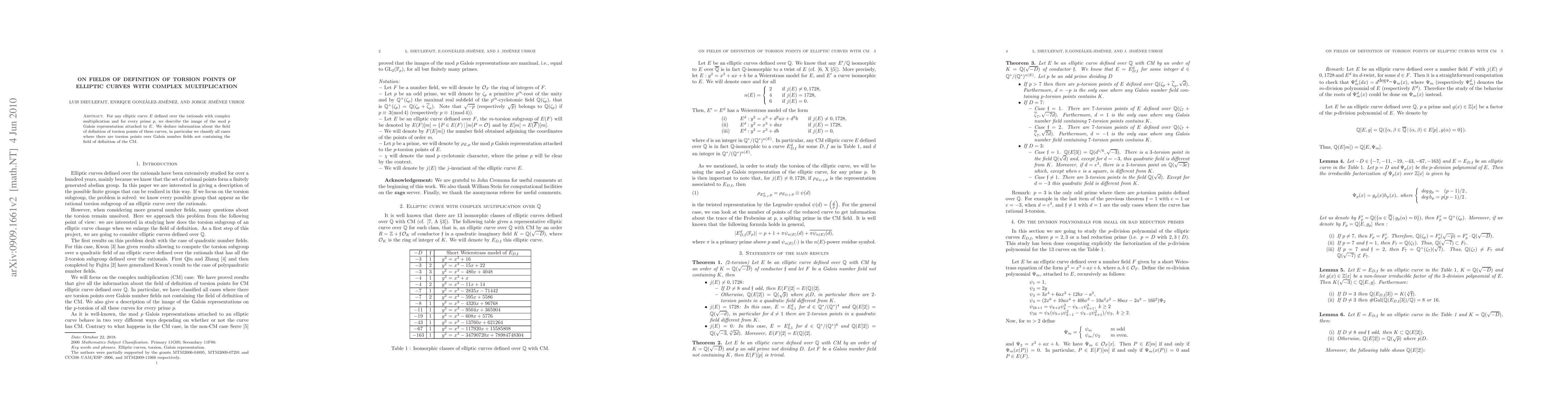 This paper analyzes elliptic curves with complex multiplication defined over rationals, describing the image of the mod p Galois representation and deducing information on the field of definition of their torsion points, particularly classifying cases with torsion points over non-containing Galois number fields.