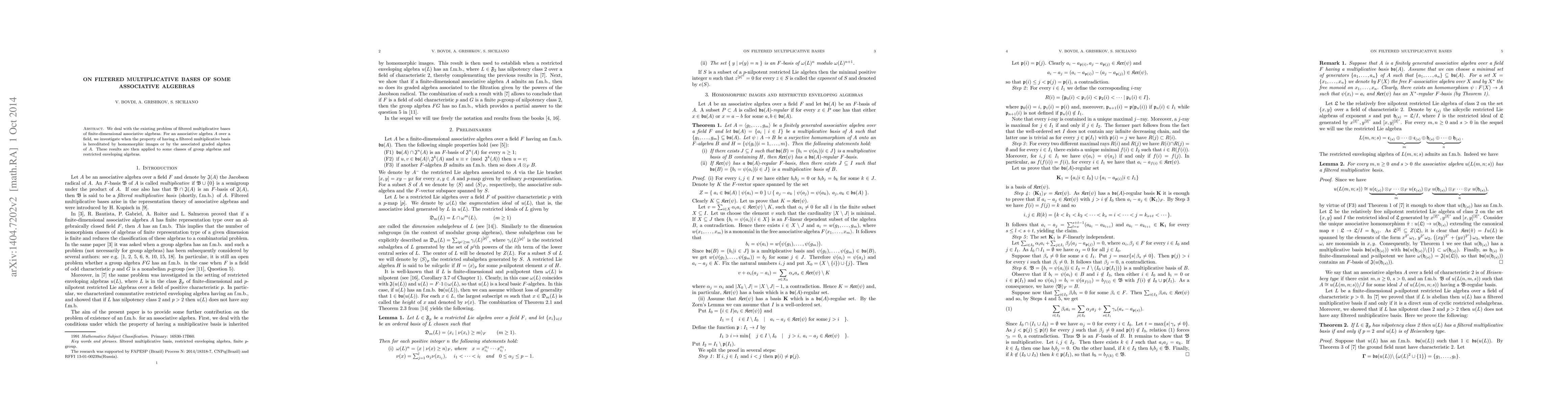 This paper investigates the existence of filtered multiplicative bases in associative algebras, focusing on hereditary properties under homomorphic images and associated graded algebras. The findings have implications for group algebras and restricted enveloping algebras.