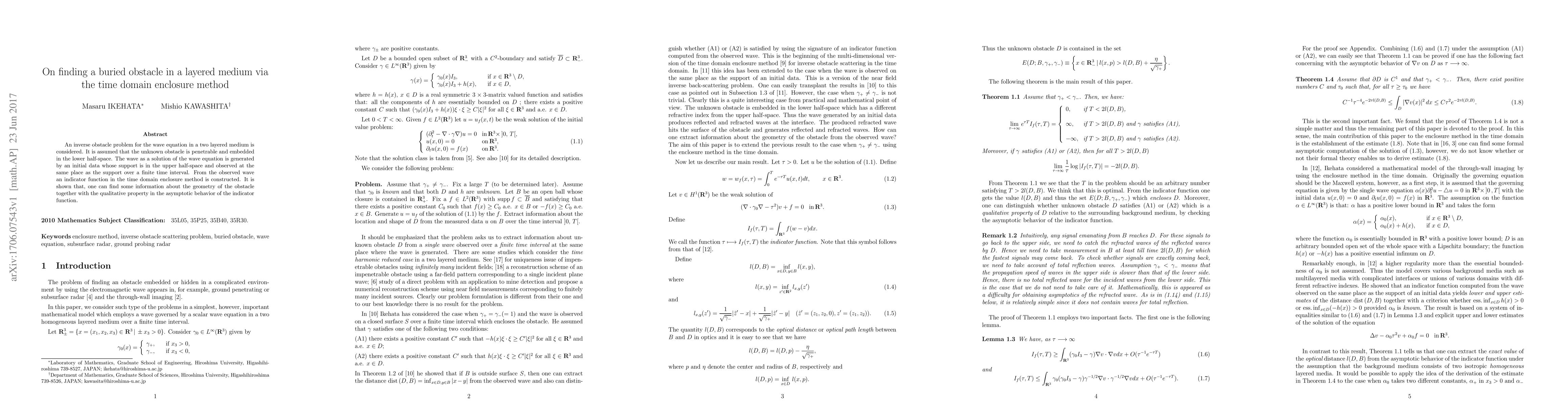 This paper addresses an inverse obstacle problem in a two-layered medium using the time domain enclosure method. It demonstrates how to infer the geometry of a buried, penetrable obstacle from wave observations and constructs an indicator function to reveal its qualitative properties.