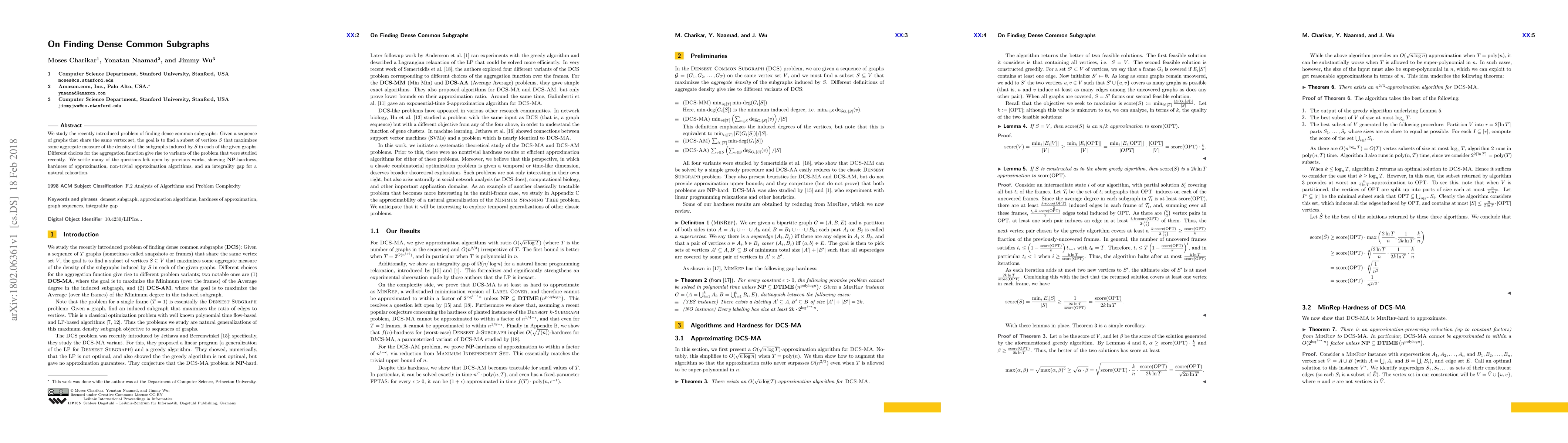 This paper investigates the problem of identifying dense common subgraphs in a sequence of graphs sharing the same vertex set, presenting NP-hardness, approximation algorithms, and an integrality gap for a natural relaxation. It resolves several open questions from prior studies.