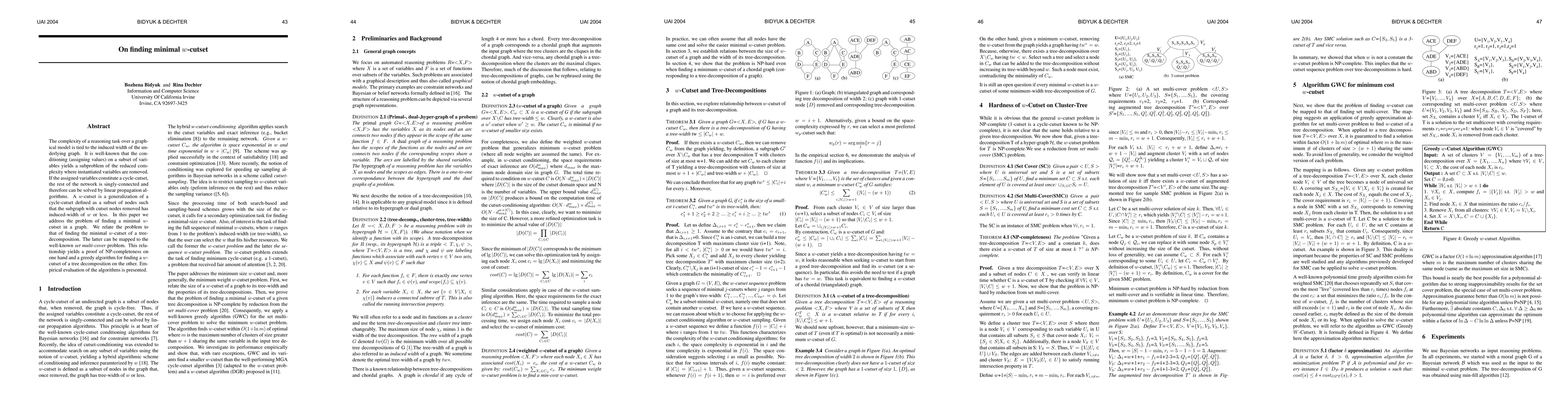 This paper investigates the problem of finding a minimal w-cutset in a graph, which generalizes cycle-cutsets and relates to the set multi-cover problem. It proves the problem's NP-completeness and proposes a greedy algorithm for its solution, followed by empirical evaluation.