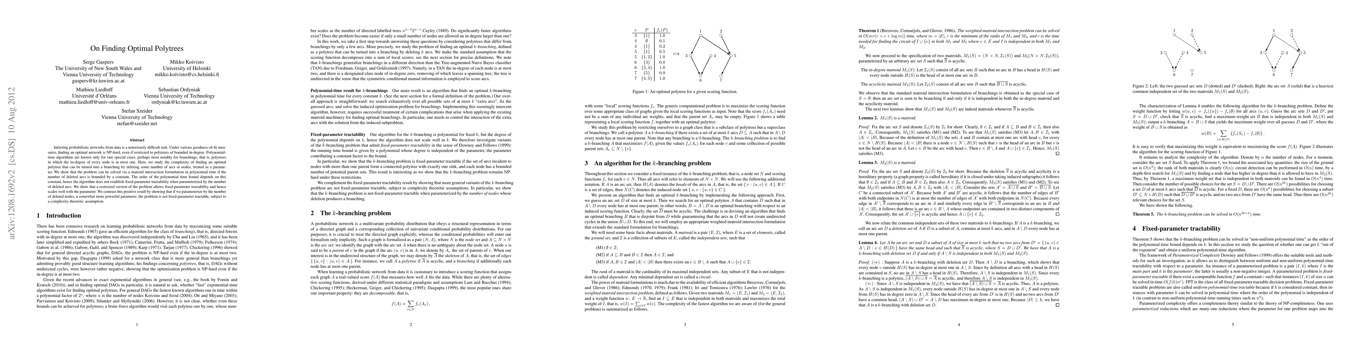 This paper explores the complexity of finding an optimal polytree, a type of probabilistic network, which is generally NP-hard. It introduces a polynomial-time algorithm for a variant of the problem, where the optimal polytree can be converted into a branching (a polytree with a maximum in-degree of one) by deleting a constant number of arcs or nodes. The algorithm's efficiency depends on the deletion constant. Interestingly, while a restricted version of the problem allows for fixed-parameter tractability when parameterized by deleted arcs, the problem becomes intractable when parameterized by deleted nodes, under a complexity-theoretic assumption.