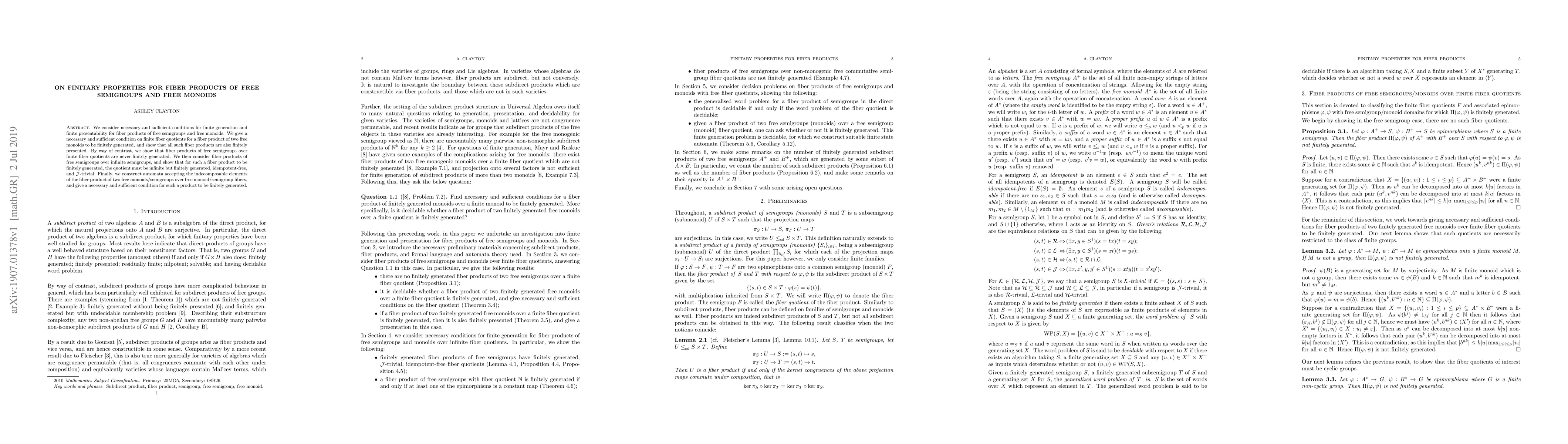 This research paper presents conditions for finite generation and finite presentability in fiber products of free semigroups and monoids. It establishes a necessary and sufficient condition for finitely generated fiber products of free monoids and shows they are finitely presented. It contrasts this with free semigroups, demonstrating they are never finitely generated under finite fiber quotients. For fiber products of free semigroups over infinite semigroups, it requires the quotient to be infinite, finitely generated, idempotent-free, and $\mathcal{J}$-trivial to be finitely generated. The paper also constructs automata for indecomposable elements in these fiber products.