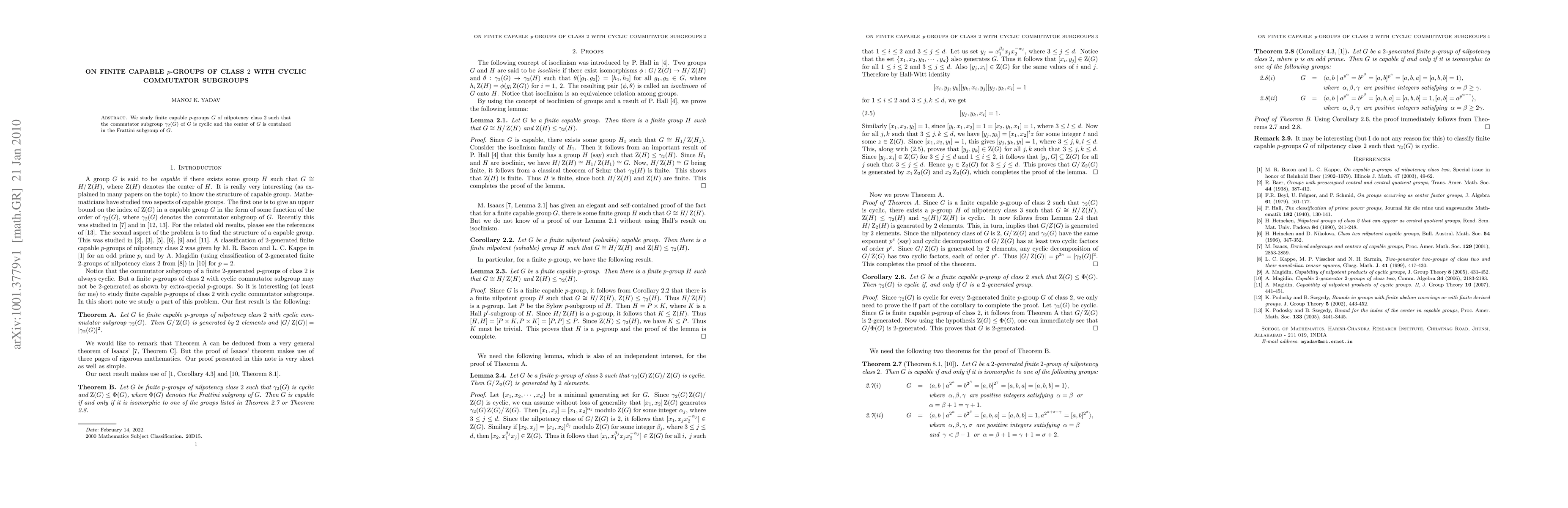 We study finite capable $p$-groups $G$ of nilpotency class 2 such that the commutator subgroup $\gamma_2(G)$ of $G$ is cyclic and the center of $G$ is contained in the Frattini subgroup of $G$.