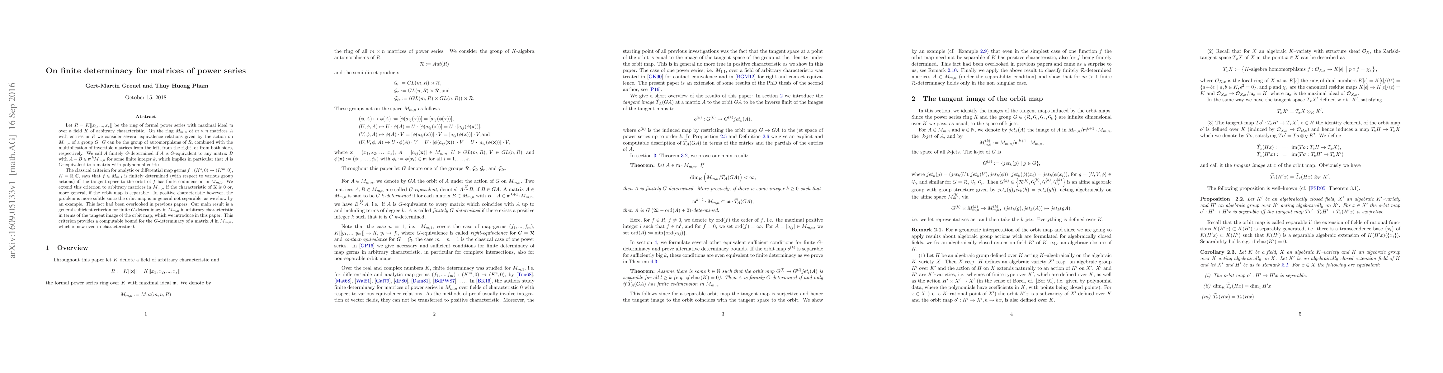 A research paper introduces a criterion for determining if matrices with power series entries are finitely determined under various group actions, providing a new sufficient condition in arbitrary characteristic.
