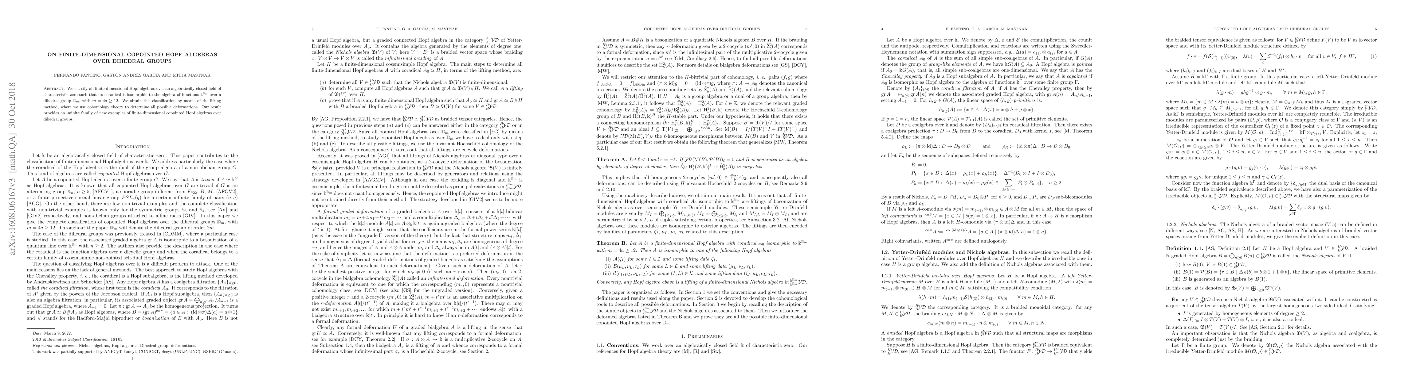 This paper classifies finite-dimensional Hopf algebras over an algebraically closed field with coradical isomorphic to the algebra of functions over a dihedral group D_m (m>11). The authors utilize the lifting method and cohomology theory to uncover an infinite family of new examples.