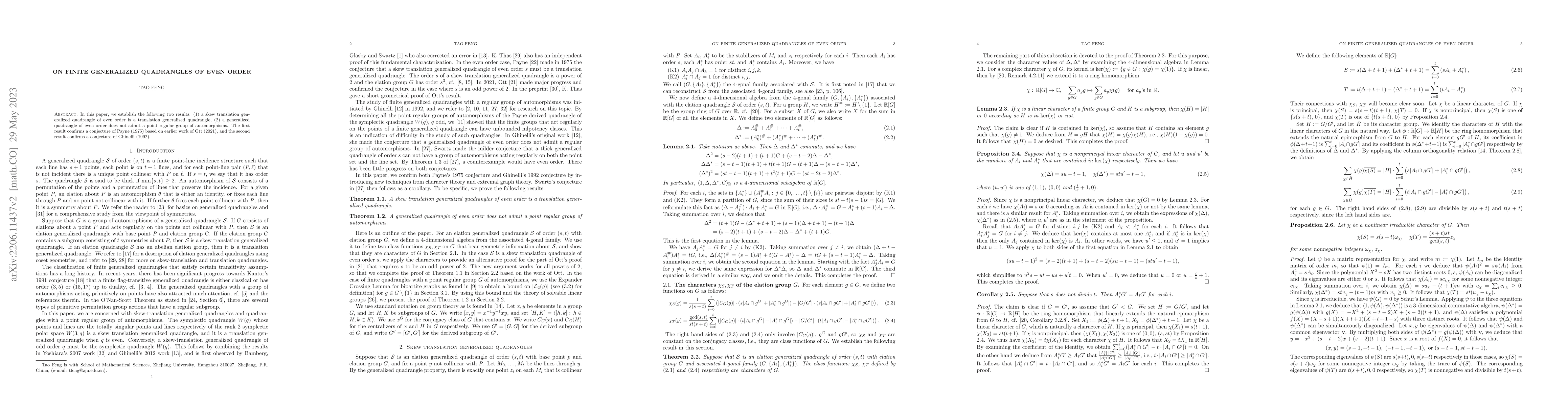 In this paper, we establish the following two results: (1) a skew translation generalized quadrangle of even order is a translation generalized quadrangle, (2) a generalized quadrangle of even order does not admit a point regular automorphism group. The first result confirms a conjecture of Payne (1975) based on earlier work of Ott (2021), and the second result confirms a conjecture of Ghinelli (1992).