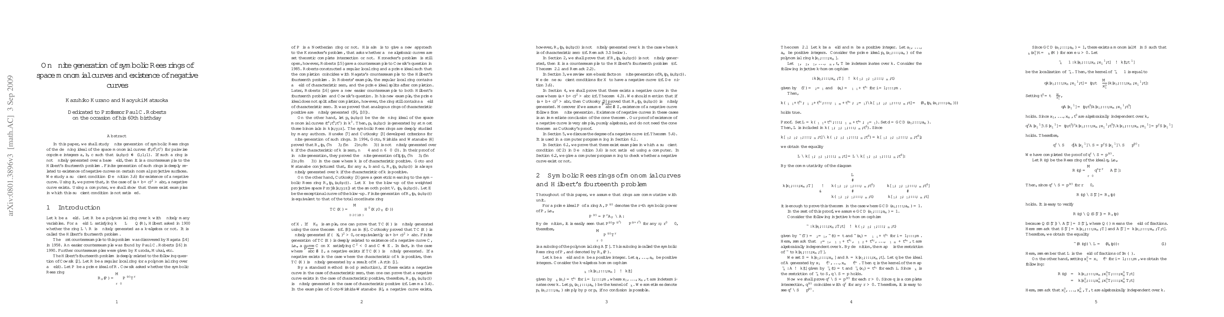 This paper investigates the finite generation of symbolic Rees rings for space monomial curves defined by $(t^a, t^b, t^c)$ with $a, b, c$ pairwise coprime and not all equal to 1. It establishes a sufficient condition for the existence of negative curves on associated normal projective surfaces, proving that such curves exist under the condition $(a+b+c)^2 > abc$.