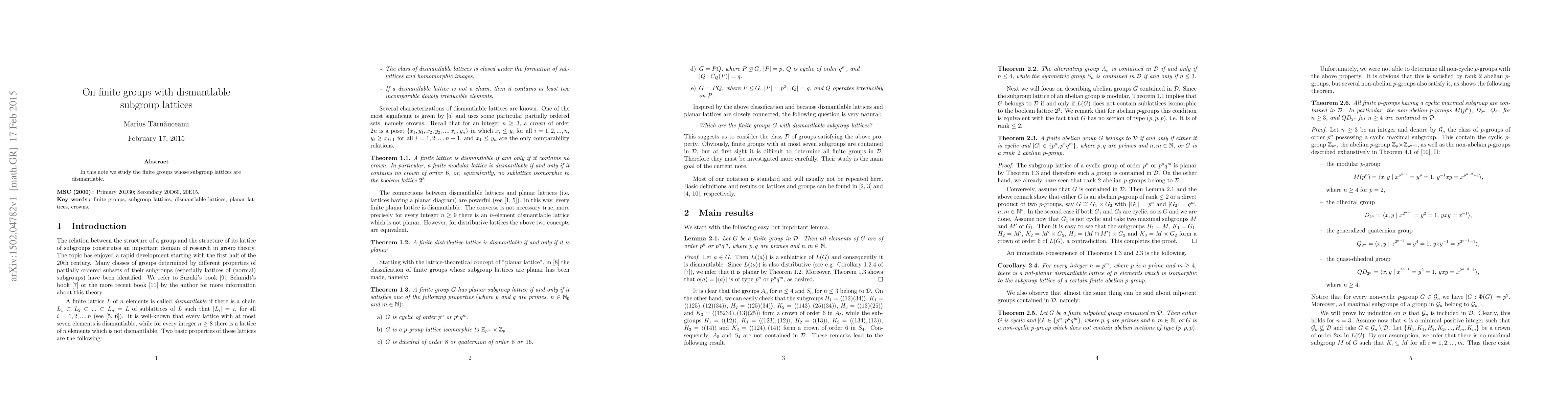 Summary: This paper investigates finite groups characterized by subgroup lattices that can be decomposed into simpler components, termed dismantlable, thereby offering insights into their structural properties.