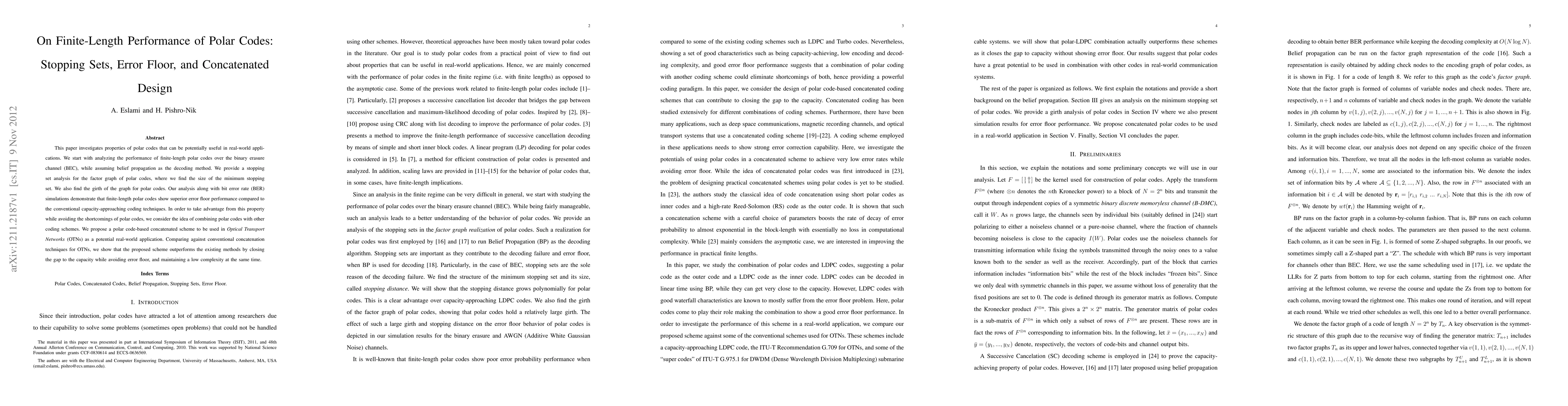 This paper analyzes the performance of finite-length polar codes over the binary erasure channel, finding superior error floor performance compared to conventional methods. It proposes a polar code-based concatenated scheme for Optical Transport Networks, demonstrating improved performance with lower complexity.