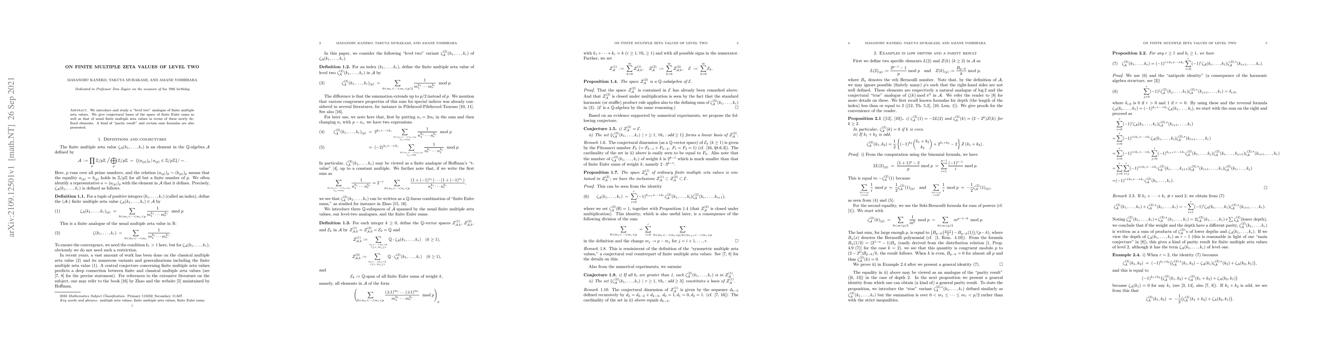 The paper introduces a "level two" analogue of finite multiple zeta values and proposes conjectural bases for the space of finite Euler sums and usual finite multiple zeta values using these new elements. It also presents a "parity result" and certain sum formulas.