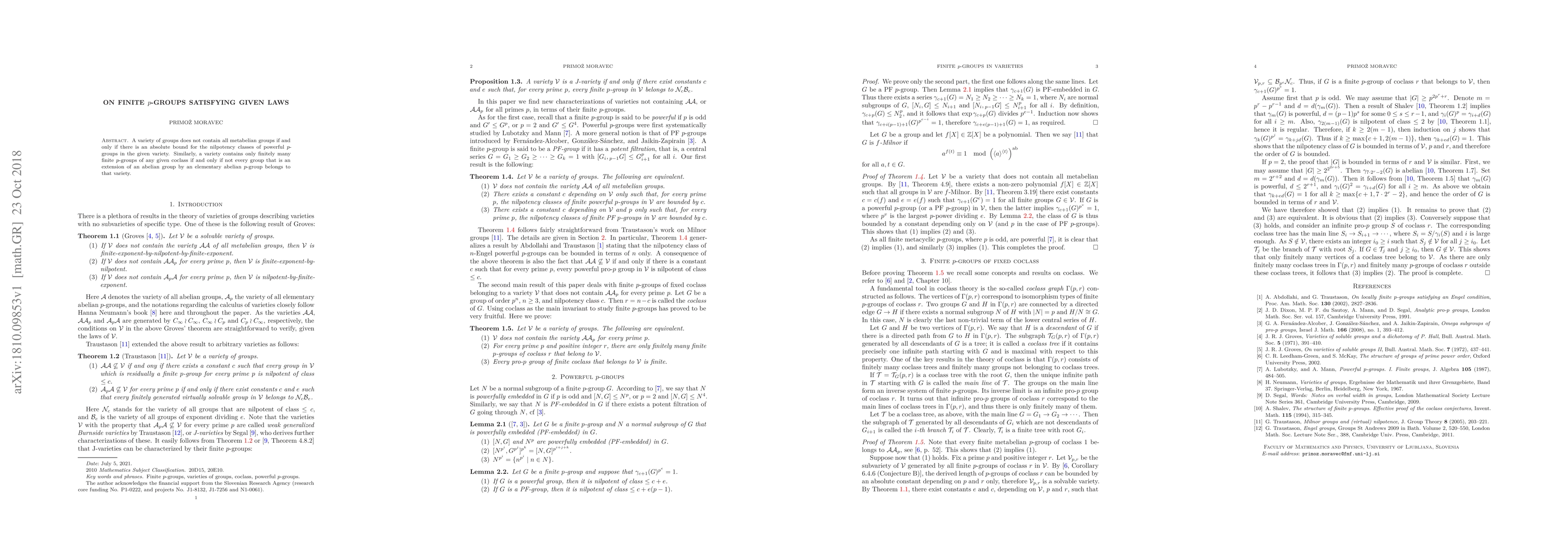 A variety of groups does not contain all metabelian groups if and only if there is an absolute bound for the nilpotency classes of powerful $p$-groups in the given variety. Similarly, a variety contains only finitely many finite $p$-groups of any given coclass if and only if not every group that is an extension of an abelian group by an elementary abelian $p$-group belongs to that variety.