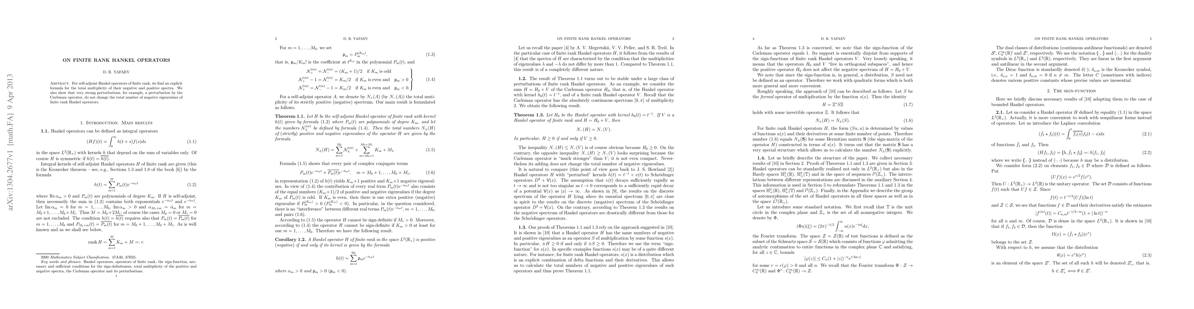 The paper provides an explicit formula for the total multiplicity of the spectra of finite rank self-adjoint Hankel operators and demonstrates that significant perturbations, like those by the Carleman operator, do not alter the count of their negative eigenvalues.