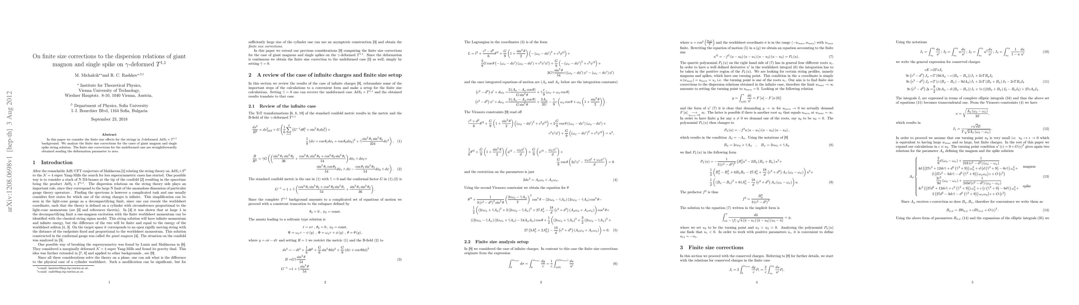 This paper investigates the finite size corrections to the dispersion relations of giant magnon and single spike string solutions in the \beta-deformed AdS_{5}\times T^{1,1} background. It finds that these corrections differ from the undeformed case and are obtained by analyzing the deformation parameter.