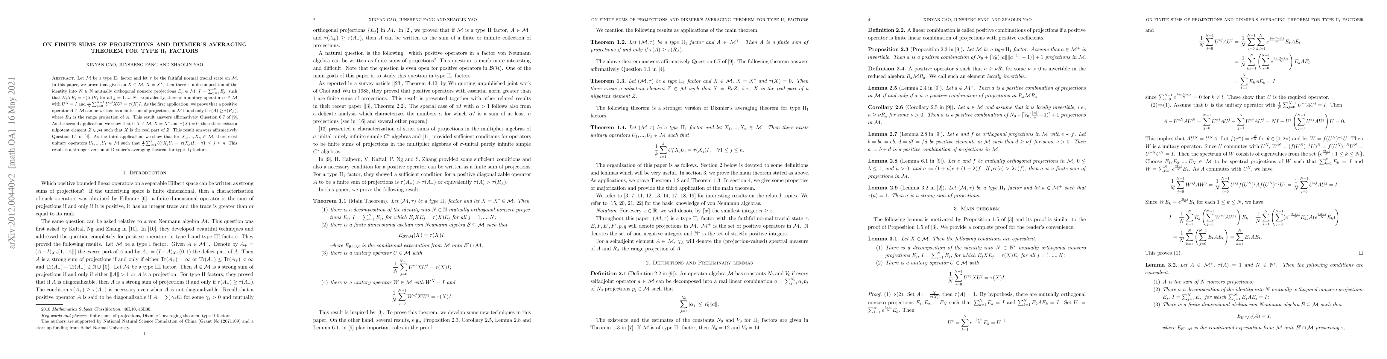 Let $\mathcal{M}$ be a type ${\rm II_1}$ factor and let $\tau$ be the faithful normal tracial state on $\mathcal{M}$. In this paper, we prove that given an $X \in \mathcal{M}$, $X=X^*$, then there is a decomposition of the identity into $N \in \mathbb{N}$ mutually orthogonal nonzero projections $E_j\in\mathcal{M}$, $I=\sum_{j=1}^NE_j$, such that $E_jXE_j=\tau(X) E_j$ for all $j=1,\cdots,N$. Equivalently, there is a unitary operator $U \in \mathcal{M}$ with $U^N=I$ and $\frac{1}{N}\sum_{j=0}^{N-1}{U^*}^jXU^j=\tau(X)I.$ As the first application, we prove that a positive operator $A\in \mathcal{M}$ can be written as a finite sum of projections in $\mathcal{M}$ if and only if $\tau(A)\geq \tau(R_A)$, where $R_A$ is the range projection of $A$. This result answers affirmatively Question 6.7 of [9]. As the second application, we show that if $X\in \mathcal{M}$, $X=X^*$ and $\tau(X)=0$, then there exists a nilpotent element $Z \in \mathcal{M}$ such that $X$ is the real part of $Z$. This result answers affirmatively Question 1.1 of [4]. As the third application, we show that let $X_1,\cdots,X_n\in \mathcal{M}$. Then there exist unitary operators $U_1,\cdots,U_k\in\mathcal{M}$ such that $\frac{1}{k}\sum_{i=1}^kU_i^{-1}X_jU_i=\tau(X_j)I,\quad \forall 1\leq j\leq n$. This result is a stronger version of Dixmier's averaging theorem for type ${\rm II}_1$ factors.
